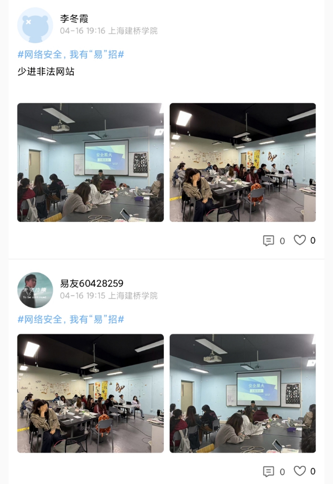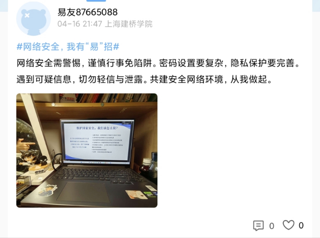 本次班会不仅是一次理论教育,更推动了安全意识的实践转化。班会结束后,学院发起“安全星火行动”倡议,鼓励学生制定安全公约,并围绕“国家安全”主题创作海报等作品,优秀成果将在校园官方平台展出。