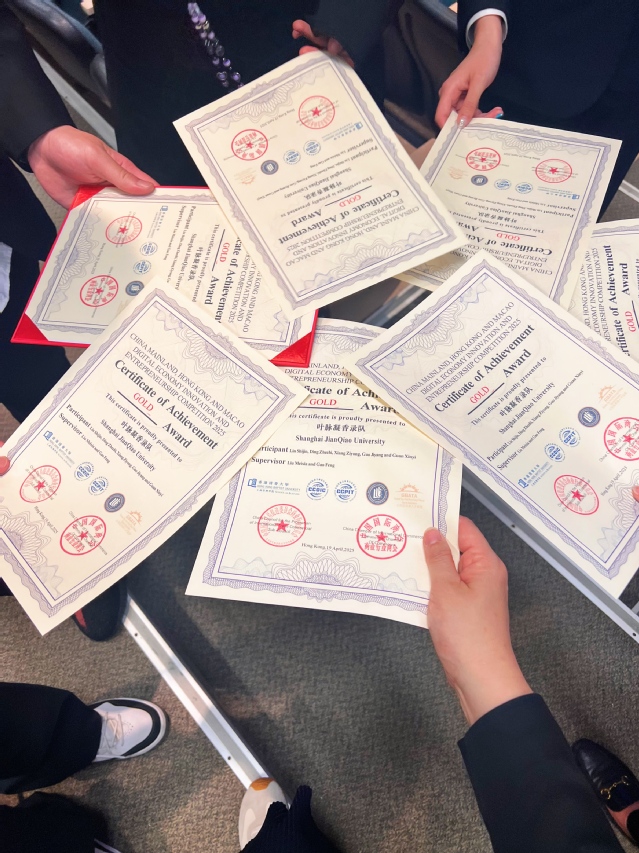 4 月 19 日,2025 年内地与港澳地区数字经济创新创业竞赛在香港浸会大学圆满落下帷幕。上海建桥学院商学院叶脉凝香录团队凭借“点叶化金 — 赋能乡村振兴”项目组在大赛中脱颖而出,以总分第四的优异成绩从19支劲旅中突围,成为本届赛事最大黑马,这是我校首次获得该项赛事参赛资格即斩获金奖,创下港澳地区竞赛战绩新纪录。