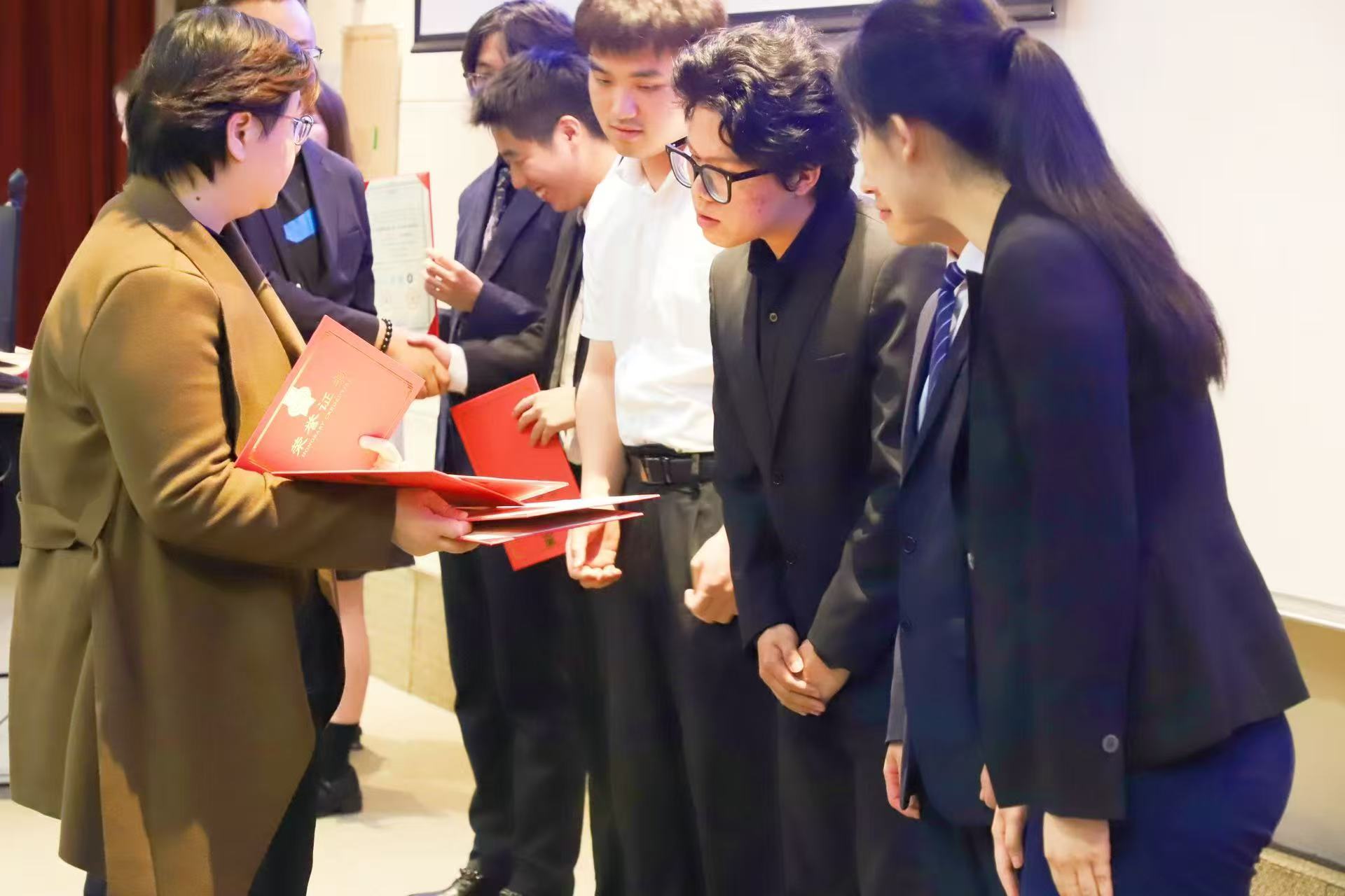 叶脉凝香录团队由国贸B22-3 班林时进、会计 B22-2 班郭继阳、国贸 B22-2 班丁哲之、传播学 B23-2 班向紫雍、艺术与科技 B22-3 班管欣怡五位来自不同专业的同学组成。队长林时进(国贸专业)带领团队打造专业赋能链: 国际经济与贸易专业的市场分析能力、会计学专业的财务规划思维、传播学专业的品牌推广视野、艺术与科技专业的视觉设计创意,共同为点叶化金项目注入多元创新动能。竞赛中,面对港澳及内陆高校的强劲对手,团队凭借精彩的路演答辩,充分展现项目的创新价值与社会意义。在答辩环节,来自香港科技大学和澳门科技大学的评委围绕 “乡村原料供应链稳定性与文创产品标准化生产平衡”与“东南亚及中东市场差异化推广策略” 等核心问题展开深度交流,团队成员结合实地调研数据与政策分析从容应答,赢得评委高度认可。