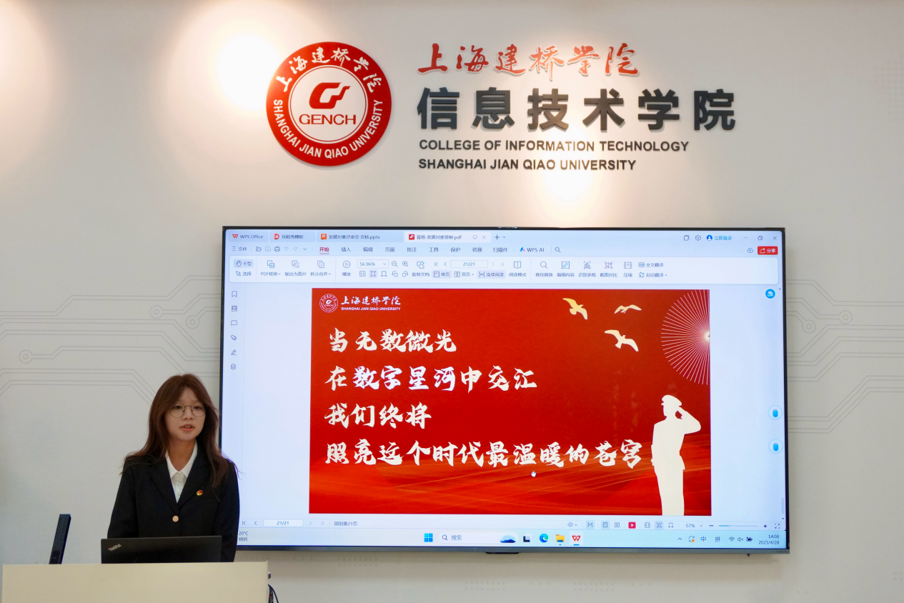 4月28日,信息技术学院第15期拟发展对象答辩评审会在党建服务中心111顺利召开。本次评审会聚焦入党动机的纯粹性、思想认识的深刻性以及工作实践的担当性,旨在从众多优秀青年中筛选出真正具备党员潜质的“好苗子”,为党注入新鲜血液,确保党的事业后继有人、薪火相传。信息技术学院党委副书记徐娜,组织员郭天慧,学生党支部书记李苗、姚理想、何超杰出席此次会议。