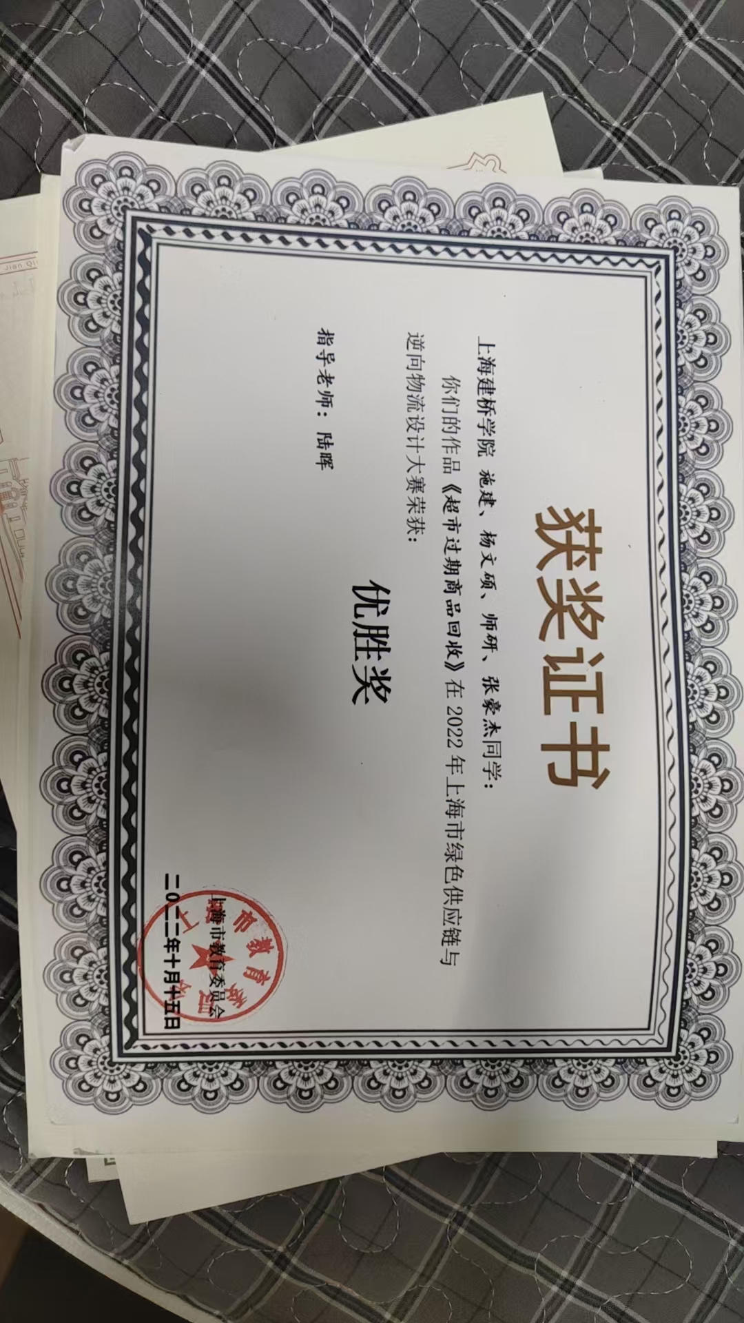 个人小传:施建,上海建桥学院商学院2025届毕业生,今年以优异成绩,考取复旦大学物流工程与管理专业硕士研究生。在校期间曾荣获特等奖学金、“弘扬雷锋精神”优秀学生金质奖章、优秀志愿者等荣誉称号,并荣获上海市绿色供应链与逆向物流设计大赛优胜奖,第六届全国大学生电商物流与供应链创新精英挑战赛大学组二等奖等竞赛奖项。