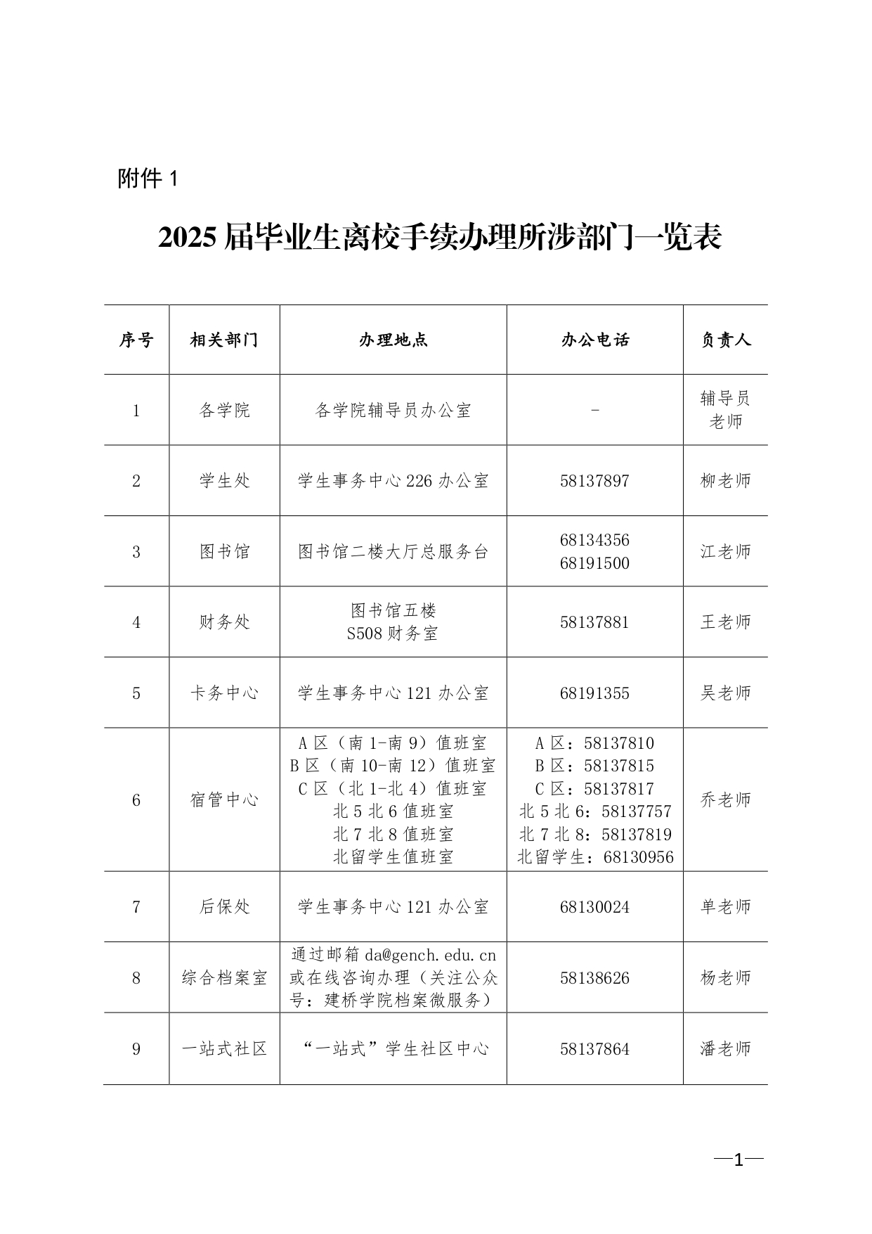 2. 毕业生办理离校手续期间,各二级学院及相关职能部门(详见附件1)要安排好专人负责对接和接受咨询,逢节假日要安排好专人值班。