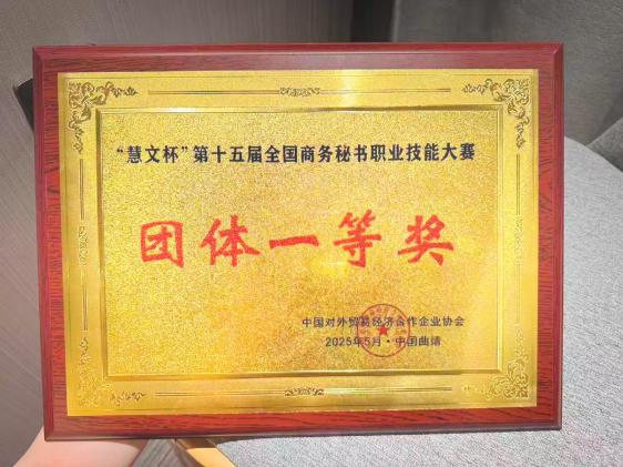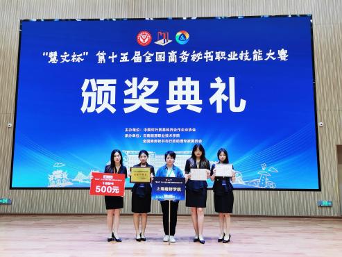 5月23日至25日,由中国对外贸易经济合作企业协会主办的“慧文杯”第十五届全国商务秘书职业技能大赛在云南能源职业技术学院成功举办。本次赛事汇聚了来自全国96所高校的400余名参赛选手,上海建桥学院代表队由秘书系主任吴美老师领队,率秘书学专业B23-1班四名精英学子参赛。经过激烈角逐,该代表队凭借扎实的专业技能与卓越的临场发挥,最终斩获团体一等奖殊荣。其中,周慧勇、林栩亦两位同学在秘书专项事务处理模块荣获二等奖,吴美、徐磊老师荣获“优秀指导教师”荣誉称号,周慧勇同学更以全面出彩的表现摘得“十佳秘书”荣誉称号。