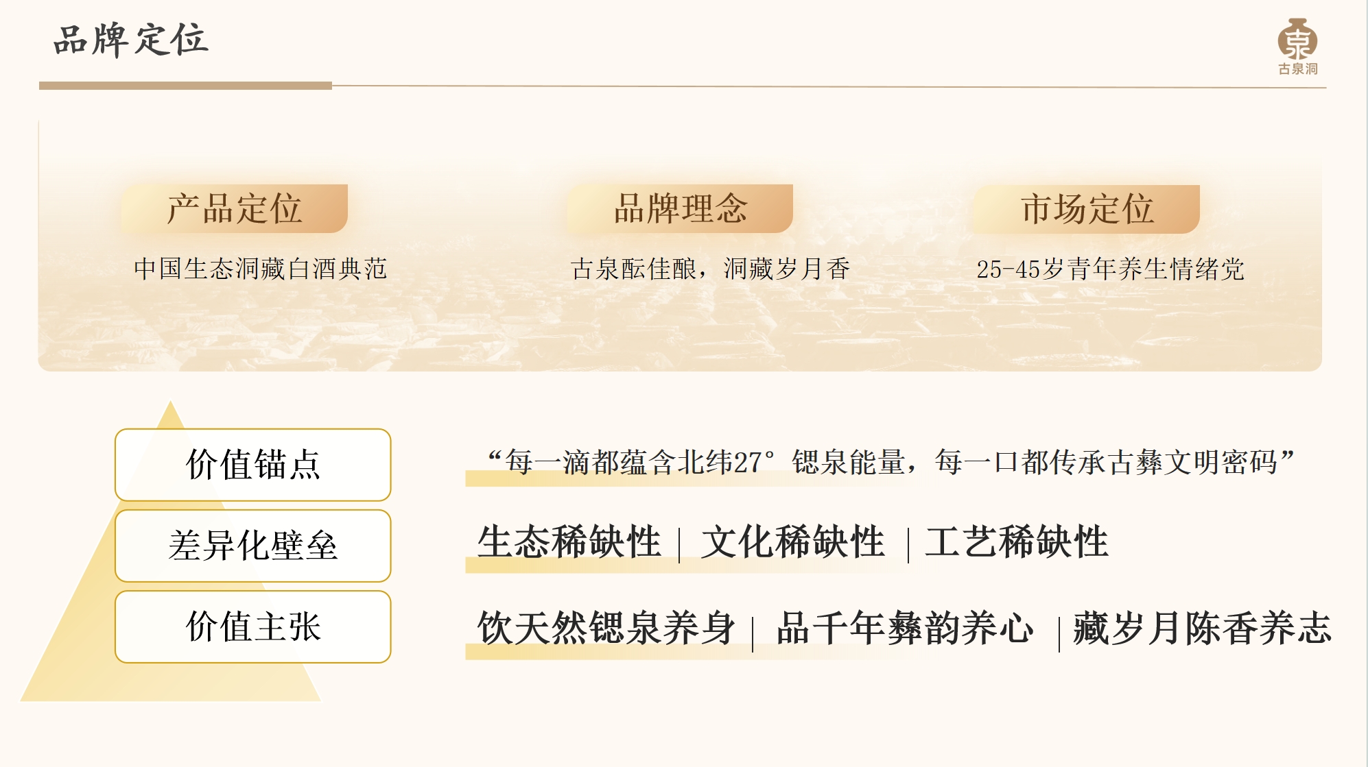 团队选择泸州古泉洞酒业股份有限公司为策划对象,方案以“古泉酝佳酿,洞藏岁月香”为核心理念,致力于打造“中国生态洞藏白酒新标杆”。当前白酒行业面临“同质化内卷”与“消费触点失灵”的双重难题,但项目深度挖掘企业所在地的独特资源——北纬27°黄金酿酒带的富锶矿泉和492米海拔溶洞的天然储藏优势,创新性地构建了“生态稀缺性+文化稀缺性(古彝文明)+工艺稀缺性”的三维价值体系,以不可复制的差异化打破头部品牌垄断格局。在精准定位25-45岁注重养生与情感消费的青年群体基础上,团队提出了“古彝文明活态体验+科技赋能”的创新运营模式。该模式融合了三星堆文创联名、沉浸式酒庄体验、区块链溯源系统保障品质可信等亮点,并设计了专属IP形象“锶锶”“溶溶”及完整的视觉系统,精准匹配新一代消费者对“文化内涵+品质保障”的双重诉求。营销策略上,团队采用线上线下融合推广,结合趣味小游戏引流、全媒体矩阵传播,并创新性地融入了“古彝乡土振兴计划”, 将品牌传播与乡村产业扶持结合,既规避传统硬广的消费疲劳,又通过公益属性提升品牌温度,在消费疲软背景下以“价值共鸣”替代“单向灌输”,赢得评委对“商业可持续性”的认可。