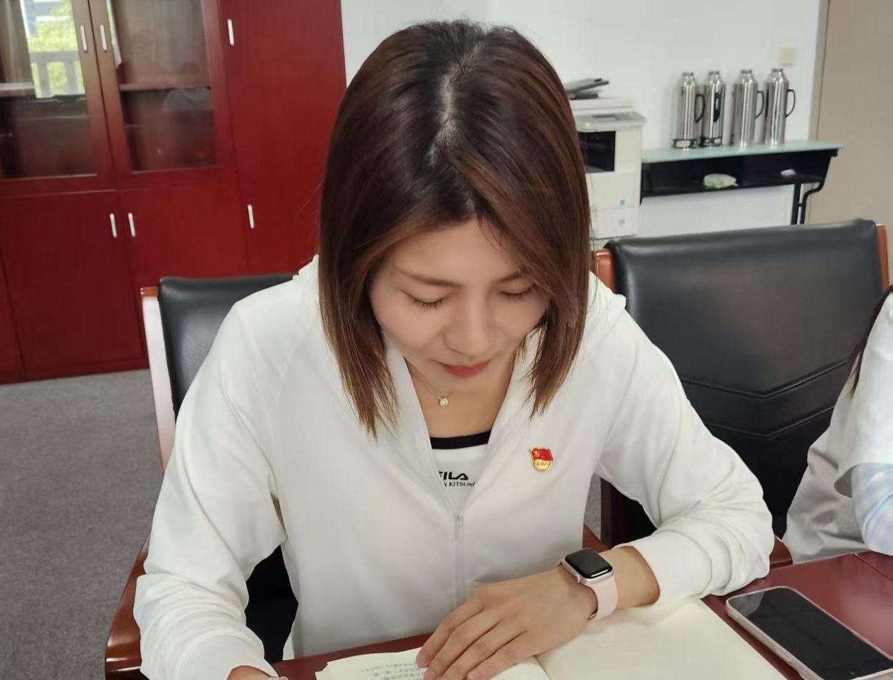 会上,支部党员王骏领学了《习近平关于加强党的作风建设论述摘编》第六章到第九章。她逐章深入解读,结合实际案例,剖析摘编要点,让党员们对党的作风建设的重要性和具体要求有了更清晰的认识。随后,支部党员李婉婉和刘璇分别结合工作岗位谈了体会,分享到党的作风就是党的形象,关系人心向背。落实到实际工作中,就是要时刻牢记为人民服务的宗旨,密切联系群众。作为行政教师党员,要从日常教学服务工作的点滴入手,比如及时回应教职工的需求,耐心解决教学中遇到的行政事务难题,切实为广大教职工服务好,以实际行动彰显党的优良作风。
