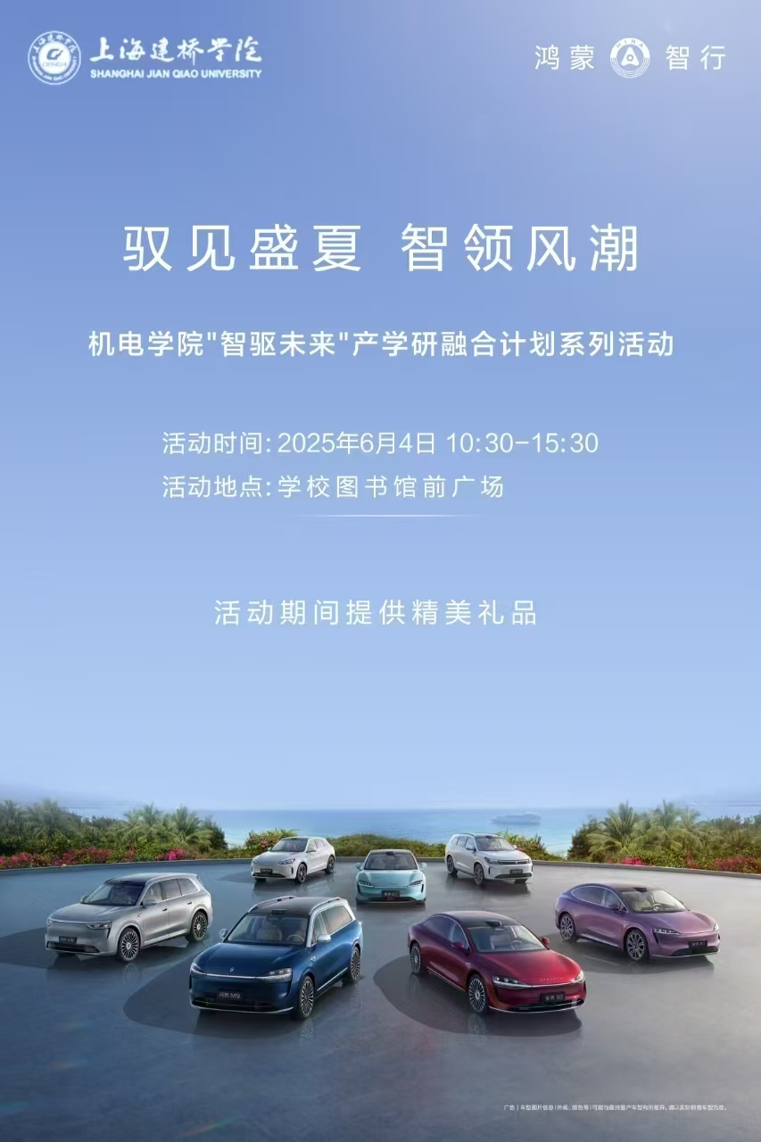 6月4日,华为问界汽车走进我校,在图书馆前广场开展了一场集专业教学、实践演练与师生服务于一体的产教融合活动。此次活动是机电学院智启未来产学研融合计划的系列项目之一,旨在深化校企合作,提升学生实践能力。