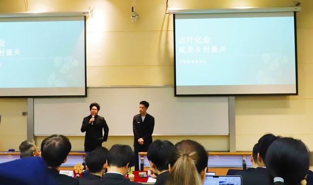 叶脉凝香录团队由国贸B22-1 班林时进、会计 B22-2 班郭继阳、国贸 B22-3 班丁哲之、传播学 B23-2 班向紫雍、艺术与科技 B22-3 班管欣怡五位来自不同专业的同学组成。队长林时进(国贸专业)带领团队打造专业赋能链: 国际经济与贸易专业的市场分析能力、会计学专业的财务规划思维、传播学专业的品牌推广视野、艺术与科技专业的视觉设计创意,共同为点叶化金项目注入多元创新动能。竞赛中,面对港澳及内陆高校的强劲对手,团队凭借精彩的路演答辩,充分展现项目的创新价值与社会意义。在答辩环节,来自香港科技大学和澳门科技大学的评委围绕 “乡村原料供应链稳定性与文创产品标准化生产平衡”与“东南亚及中东市场差异化推广策略” 等核心问题展开深度交流,团队成员结合实地调研数据与政策分析从容应答,赢得评委高度认可。