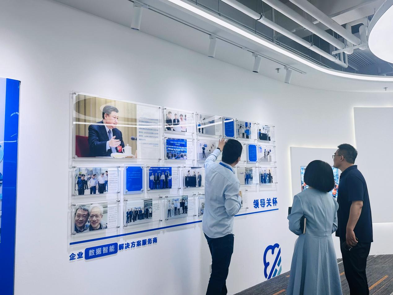 在走访活动中,老师们参观了临科智华的宣传展厅及办公环境,与在岗校友21级商务日语专业学生周梅见面交流。临科智华人事经理黄宜及数据总监李科向老师们详细介绍了公司在人工智能和大数据领域的最新研究成果和技术应用,包括数据处理流程、数据质量对模型质量的影响以及最新的计算设备等。老师们对临科智华在AI领域的技术实力和创新能力给予了高度评价。