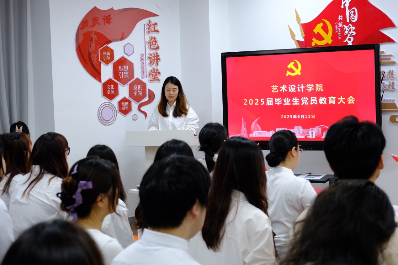 6月12日,艺术设计学院党委在学校“一站式”学生社区中心红色讲堂举行毕业生党员教育大会。学院党委正副书记、学生党支部正副书记和全体毕业生党员参加,大会由学院党委专职组织委员周意芳主持。
