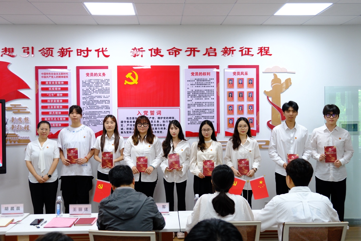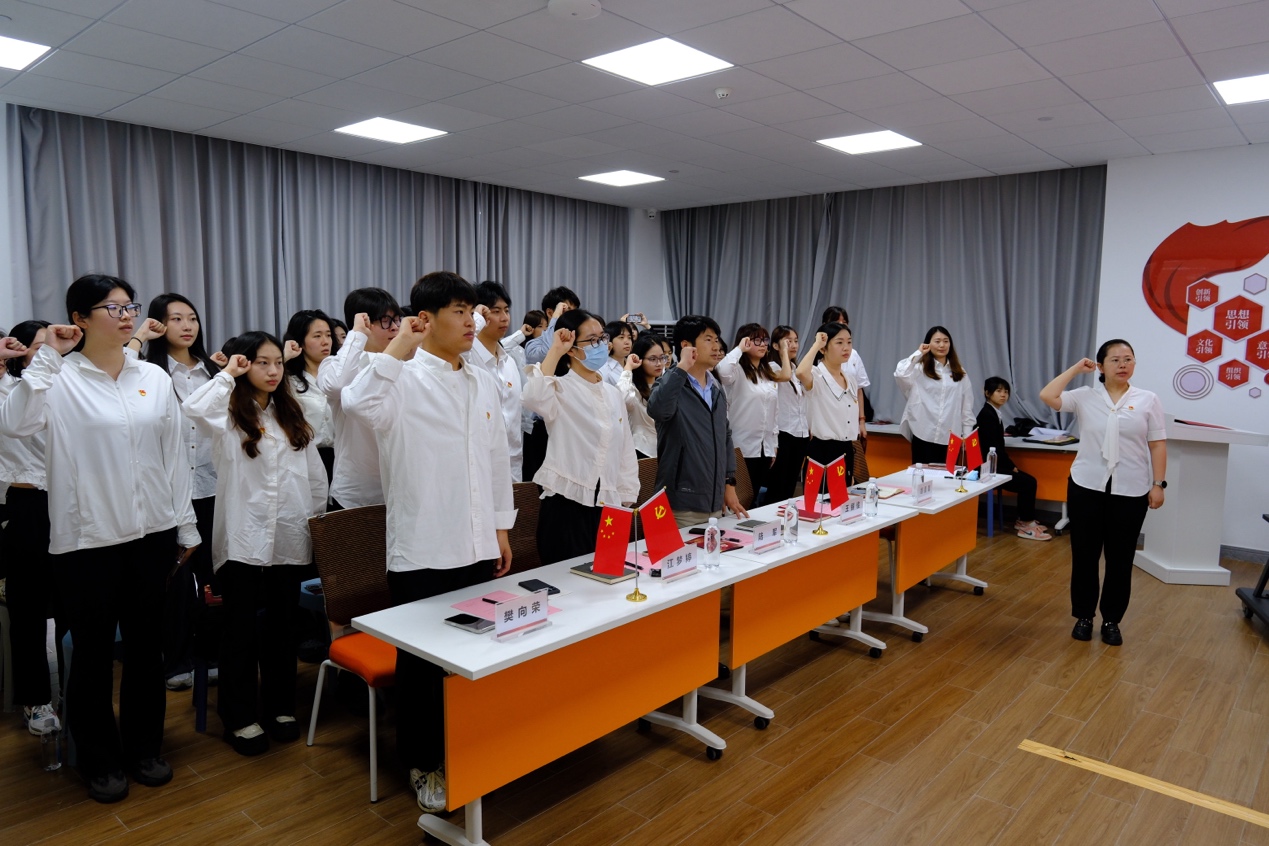 全体党员在学院党委书记王丽佳老师的带领下,面向党旗庄严宣誓,重温入党誓词。誓言铮铮,响彻会场,不仅是对入党初心的回溯,更是对未来践行党员使命的坚定承诺,激励着毕业生党员在新征程上以更高标准要求自己。