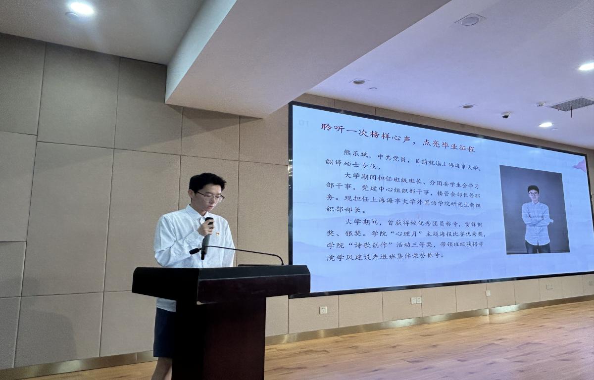 党员校友陈琛、熊乐斌向毕业生党员分享成长经历。陈琛校友曾为上海外国语学院研究生、现为建桥机电学院辅导员,她以考研和育人岗的经历为例,帮助毕业生党员们明确人生的奋斗方向,坚定来时路的目标。与此同时,她传授了迷茫时的三颗定心丸,一是要保持“顿感力”,不轻易动摇决心;二是做“长期主义者”,养成大局意识;三是永远相信“蝴蝶效应”,牢记党员身份,向他人伸出援助之手。熊乐斌校友,现在上海试试大学读研,他向毕业生党员分享了自己在读研期间的学习经历,激励毕业生党员不畏难、勇向前,将个人理想追求融入党和国家事业中,勇挑时代重担。