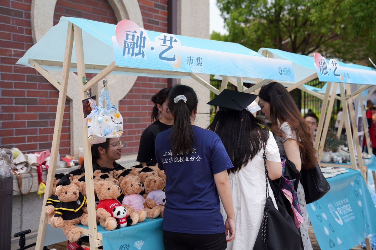 2025年6月,伴随珠宝学院毕业典礼的温馨氛围,上海建桥学院校园内蓝白花束点缀,情意融融。值此青春盛典,产教融合项目组特邀百年民族品牌老凤祥与上海建桥学院校友会珠宝学院分会,共同打造了一场别开生面的“融·艺”毕业快闪市集,为毕业生们献上一份独特的文化贺礼,也为产教融合实践书写了崭新篇章。