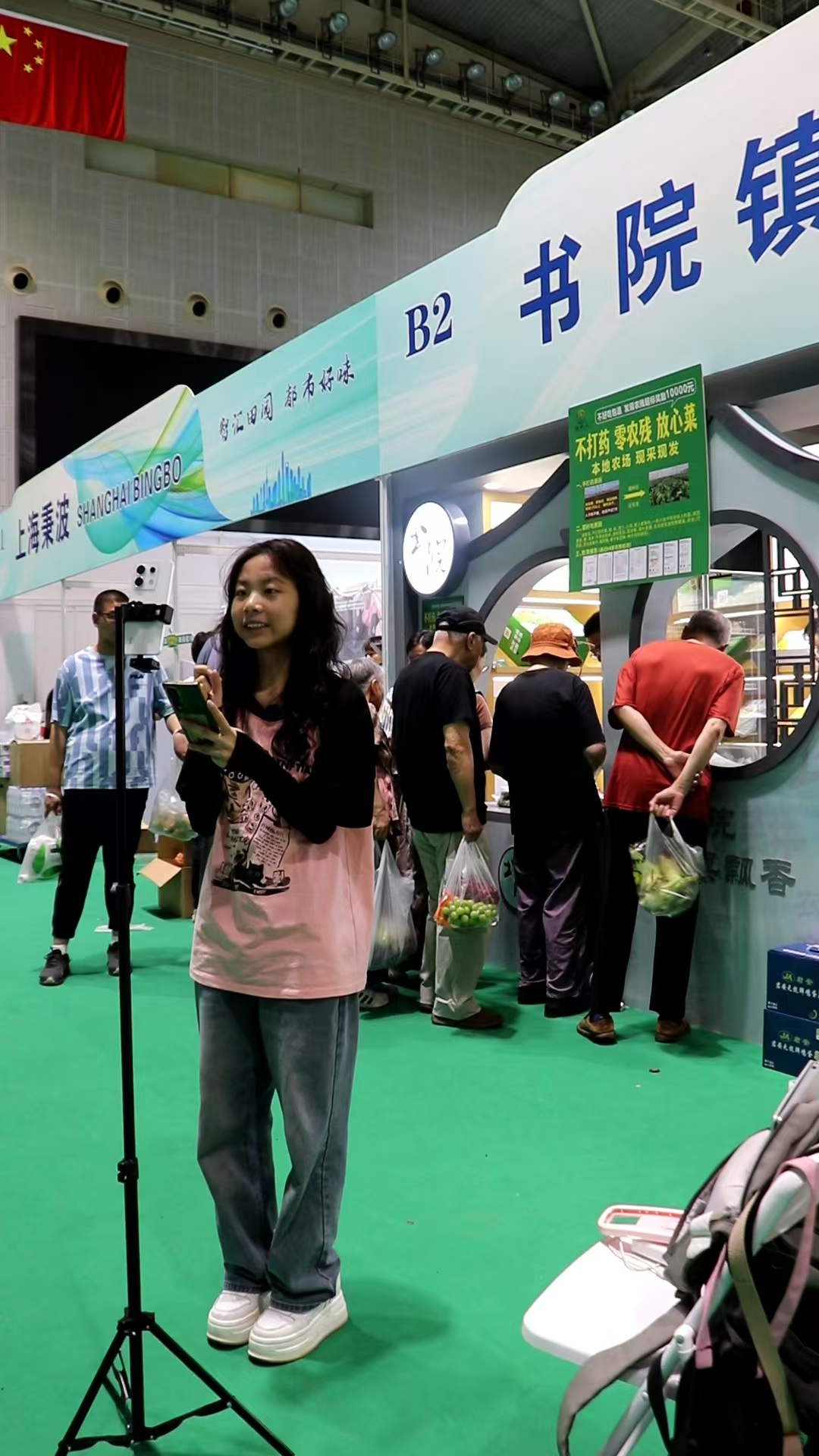 浦东新区第十七届农业博览会于7月13日在源深体育馆落下帷幕。建桥闻传学子深度参与本届盛会,不仅战略合作企业上海辛江农业技术专业合作社(书院镇B2展位)的优质农产品广受追捧,更依托“直播产教融合项目”团队,将农博会转化为一堂生动的产教融合实践大课。