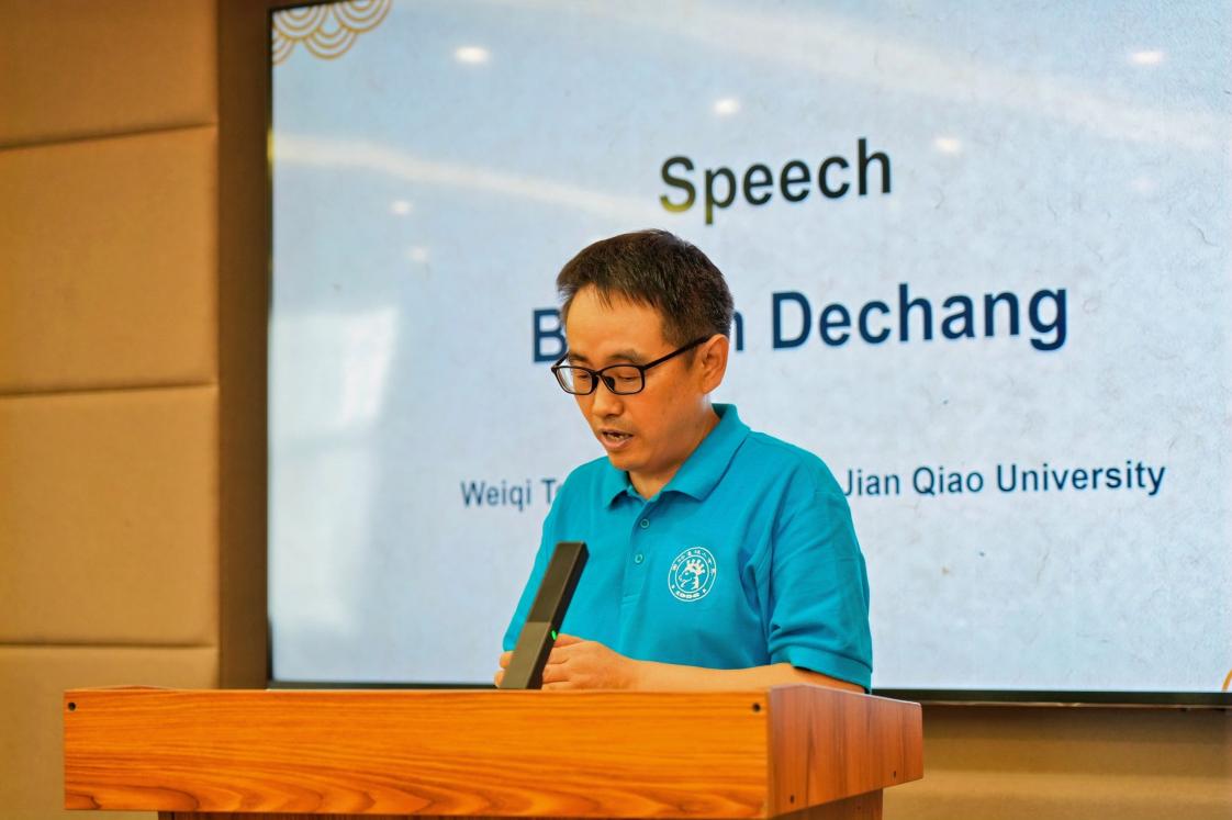 最后,校党委书记杨伟人发表致辞,杨书记向顺利完成学业的全体学员表示热烈祝贺,并向教师和工作人员团队致以谢意。上海暑期学校“中国围棋班”始终以启迪智慧、锤炼品格为核心目标。学员们用实际行动诠释了“胜固欣然,败亦可喜”的围棋真谛,展现了非凡的毅力与潜力,成为了这个夏天建桥校园里最闪亮的“棋”星。希望学员们学会在复杂局面中保持冷静思考,在激烈竞争中坚守规则与礼仪,在挫折面前汲取力量、永不言弃。永葆对围棋的热爱,继续以“棋”会友,以“智”明理,不断追求卓越,勇攀高峰。同时希望学员们能够将在中国、在上海建桥学院收获的围棋技艺、文化感悟和真挚友谊带回自己的家乡,让更多国际友人了解围棋的魅力,感受中华文化的深厚底蕴。最后他欢迎学员们再来建桥学习交流。