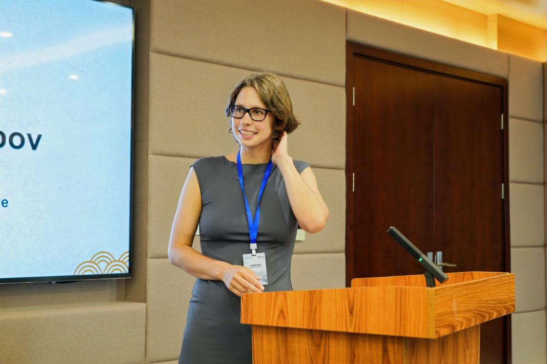 优秀学员代表Krainova Liubov回顾了自己抵达上海前的设想,进校后学校工作团队给予的悉心关照让她倍感温馨,打消了之前的所有顾虑。校园优美的环境、奇特的中华美食激发她强烈的探索欲,经历台风天气、学习使用支付宝和结交中国朋友都给她带来了全新的体验。通过与中国棋友下棋和交流的经历,她更深刻理解了围棋和中国文化,她认为围棋这项运动是关于相互尊重和平衡的游戏。