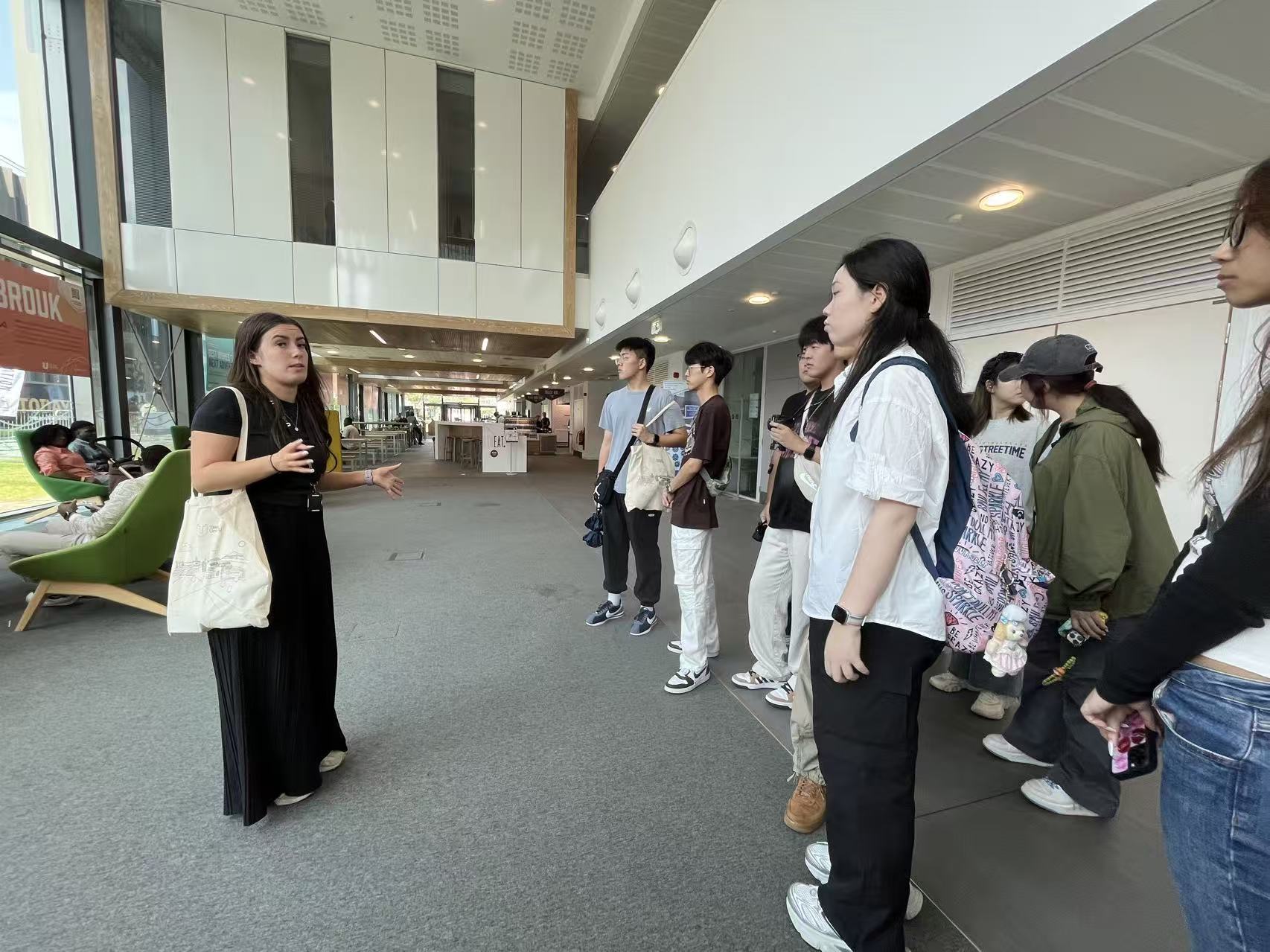 图13 提赛德大学国际发展部Emily 专员带领师生参观图书馆