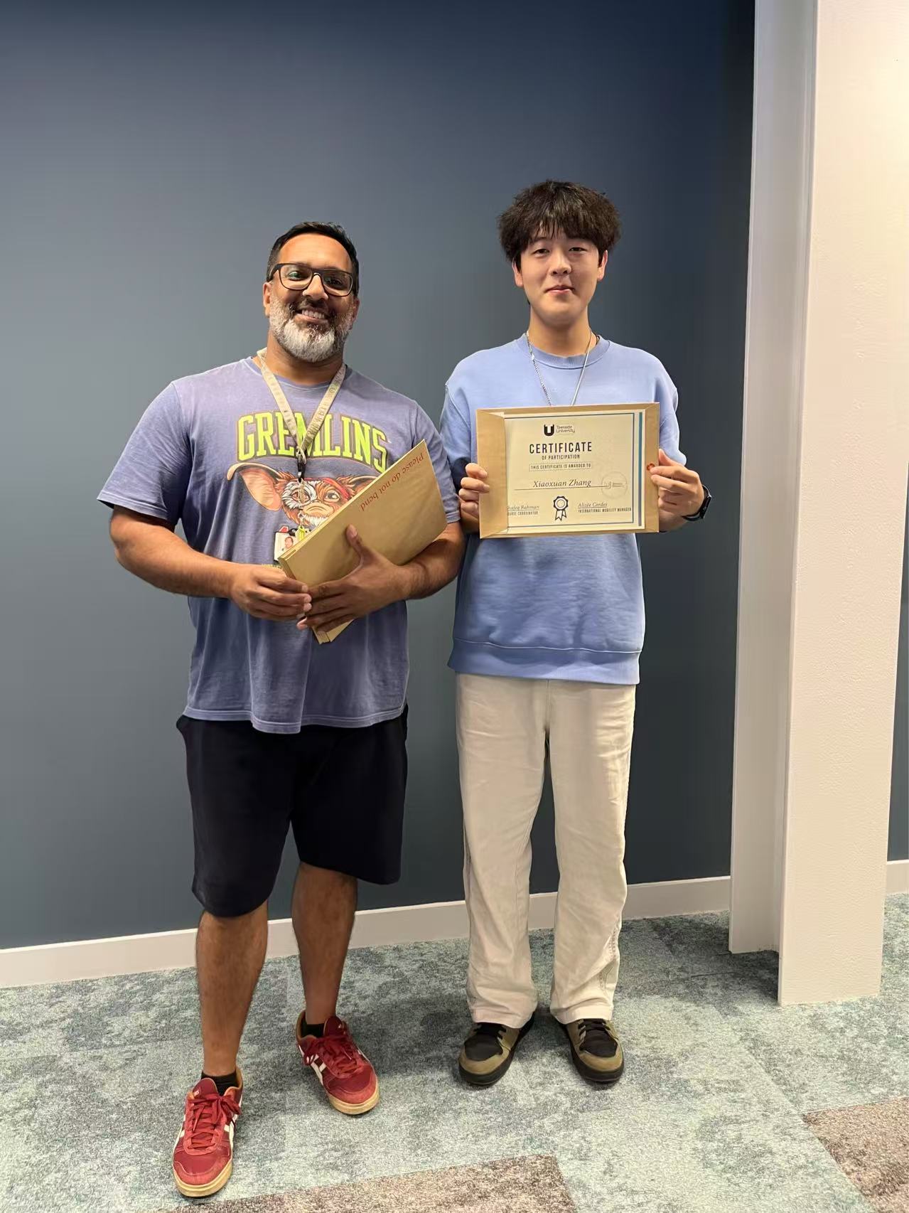 最终,全部通过课程考核,取得了优异成绩,都获取了课程证书,也受到了提赛德大学Shafeq教授的好评。