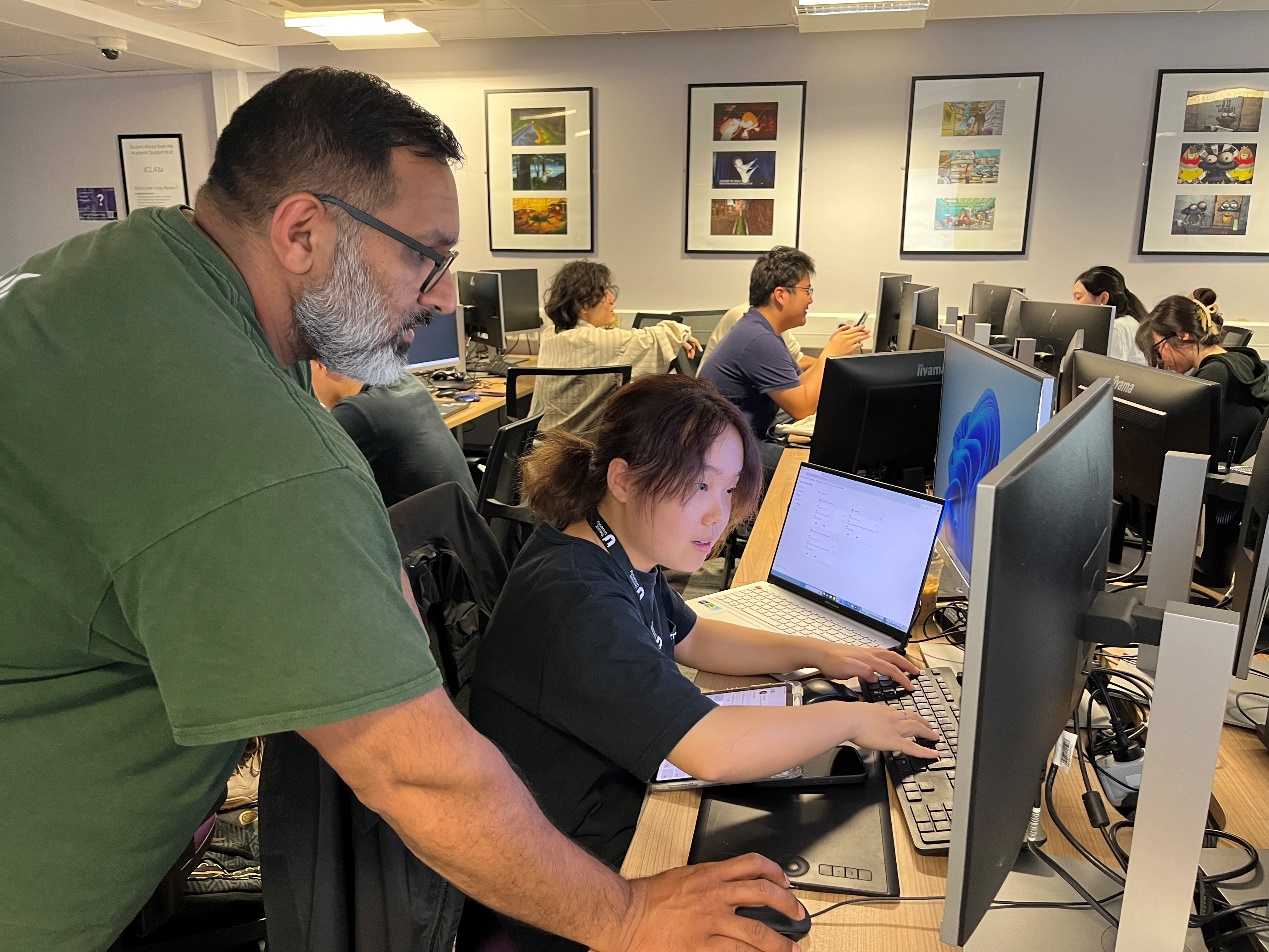 经过两周紧张的学习,在Shafeq教授指导下,同学们都完成了各自的游戏设计,都能够用流利的英语介绍自己的游戏作品。江芷娮同学说,“提赛德大学拥有先进的教学设施,为我们提供了绝佳的学习条件。老师专业知识扎实,授课方式生动有趣,课堂互动活跃,让我充分体验到了英式教育的独特魅力。在友好的学习环境中,我不仅提升了专业素养,还锻炼了英语交流能力。”