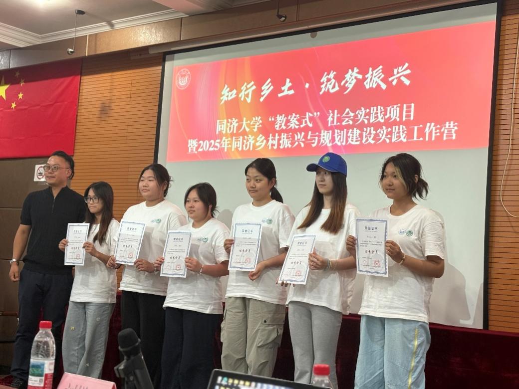 闭营仪式上,各实践小组依次展示成果,从村口景观改造到村民生活空间优化,从特色文化墙绘制到生态种植园规建,一幅幅鲜活的乡村焕新图景赢得现场阵阵掌声。仪式还对实践中表现突出的个人进行表彰,我校周佳慧、严姝轩、蔡汪萍、曾子涵四位同学荣获本次工作营“优秀营员”的荣誉称号。