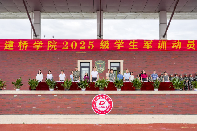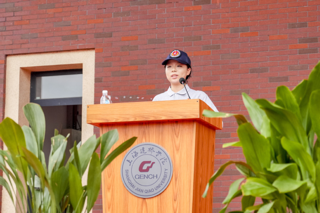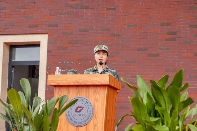 军训旅七营二十一连学员曹靖怡代表全体受训学员表决心。她表示,军训不仅是对意志品格的锤炼,更是一堂深刻的国防教育课。她代表全体新生郑重承诺:将以饱满的热情和昂扬的斗志投入到训练中,以高标准、高质量完成军训任务,做到不畏艰难、勇于担当,用实际行动展现建桥学子的风采。