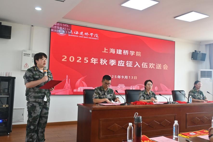 仪式上,马冯莉副书记代表全校师生向新兵致辞。她以退伍老兵的身份,勉励同学们:“从校园到军营,不仅是身份的转变,更是用青春书写忠诚的起点。希望你们以军人的标准锤炼意志,在强军实践中绽放建桥学子的风采,学校永远是你们最坚实的后盾。”