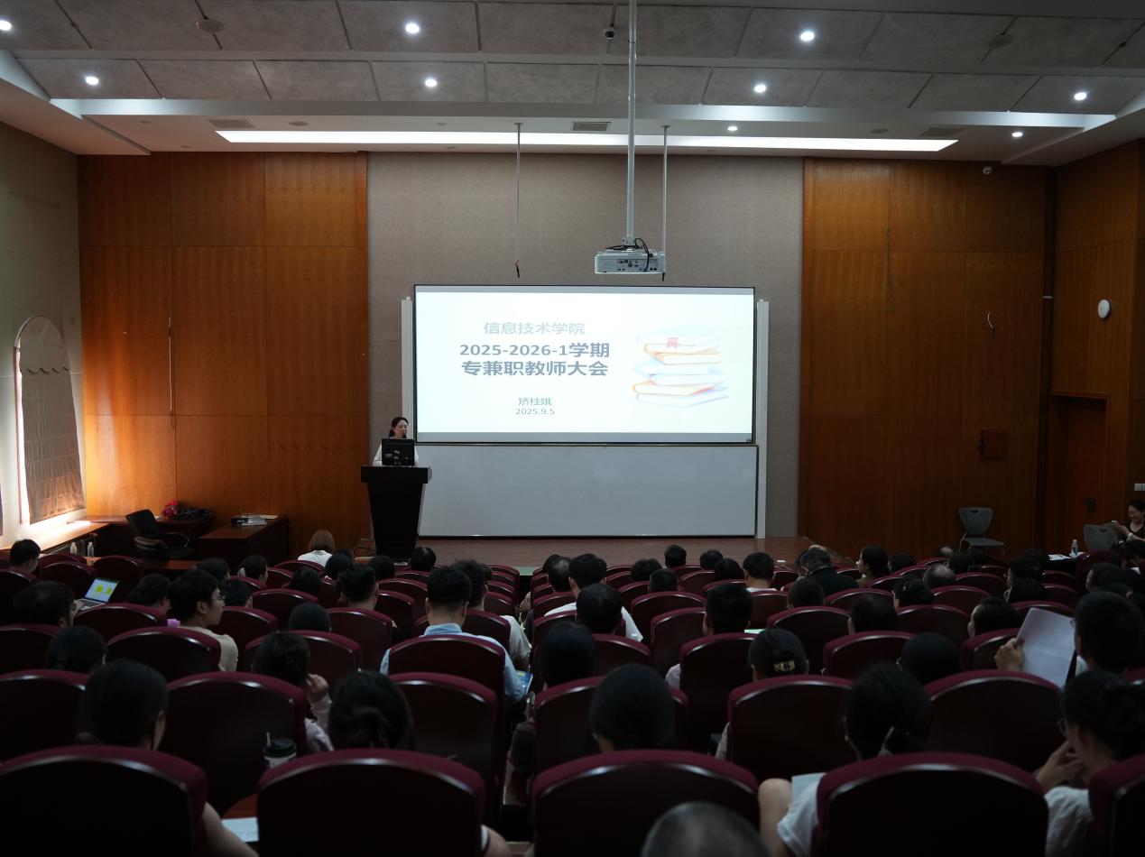 9月5日下午,信息技术学院在三教122教室召开专兼职教职工大会,学院党政领导、全体专兼职教职工参加会议。会议围绕新学期教育教学、学生管理、工程教育认证、硕士点申报和产教融合推进等各项工作展开。本次会议由学院党委书记王晨岑主持。