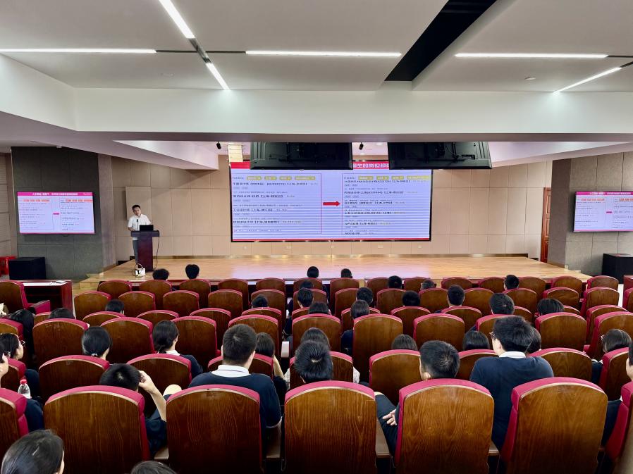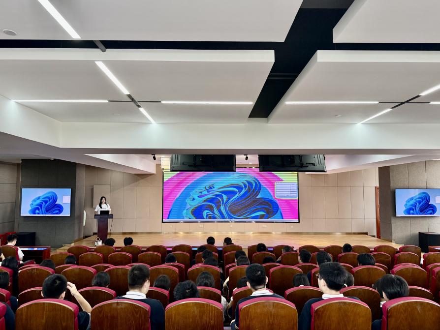 随后,专业介绍拉开帷幕。艺术设计学院环境设计系主任张慧慧首先向师生们介绍了学院办学条件,4个本科专业配备5000余平方米教学实验楼、8个产教融合工作室及38家合作企业,在校生规模超 2200人,在上海地区艺术设计类院校中位居前列。同时,学院每年开展100余场校园文化活动,从辩论赛到IP形象设计大赛,从新生锻造营到各类社团活动,为学生全面发展搭建了丰富平台。其次,详细解读了视觉传达设计、环境设计、数字媒体艺术三个专业的特色。视觉传达设计作为上海市一流专业,以文化创意、品牌构建为核心,毕业生可入职报社、动画公司等单位;环境设计融合设计学、建筑学等多学科,顺应美丽乡村建设、城市更新等政策需求,就业前景广阔,近三年专业就业率超99%;数字媒体专业聚焦网页多媒体与游戏美术方向,依托10家校企合作工作室,培养数字时代创新人才。