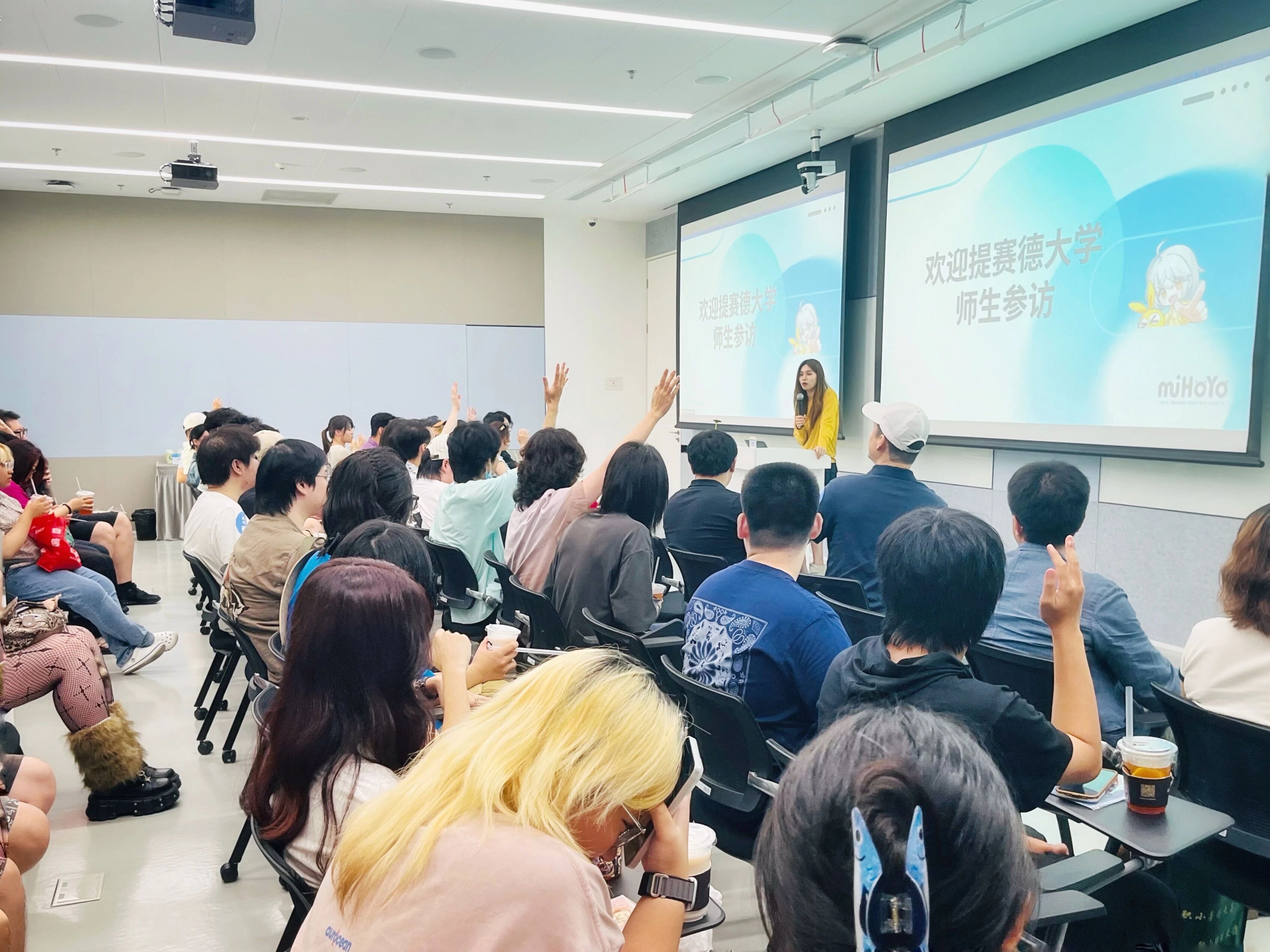 作为全球知名的游戏开发公司,米哈游以 “技术拯救世界” 为使命,凭借《崩坏》系列、《原神》等多款高质量游戏作品,在行业内占据领军地位。活动当天,三位同学与其他近 50 名提赛德大学2026-2028年毕业生一同开启了一场沉浸式的 “创意王国探秘之旅”。