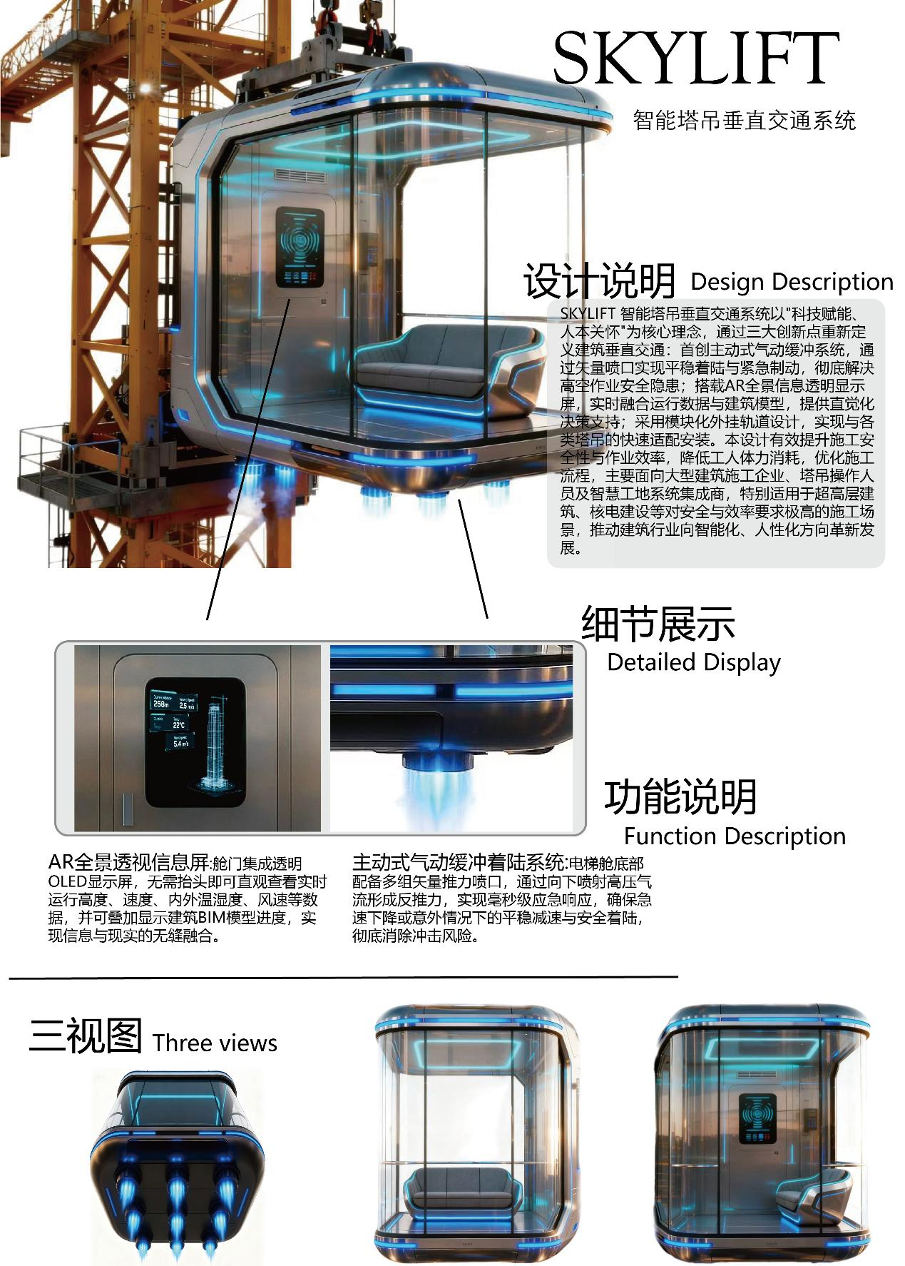 作品名称:《SKYLIFT智能塔吊垂直交通系统》