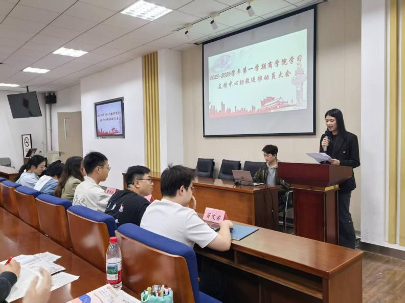 针对过去一年助教进班所取得的成果以及出现的问题,商学院学习支持中心于2025年10月20日召开了25级助教进班动员大会,学习支持中心指导老师方璐、陈梦迪,25级辅导员张灿宇老师,尤晓洁老师,杨孟杨老师,肖文齐老师,以及25级全体助教参加本次会议。