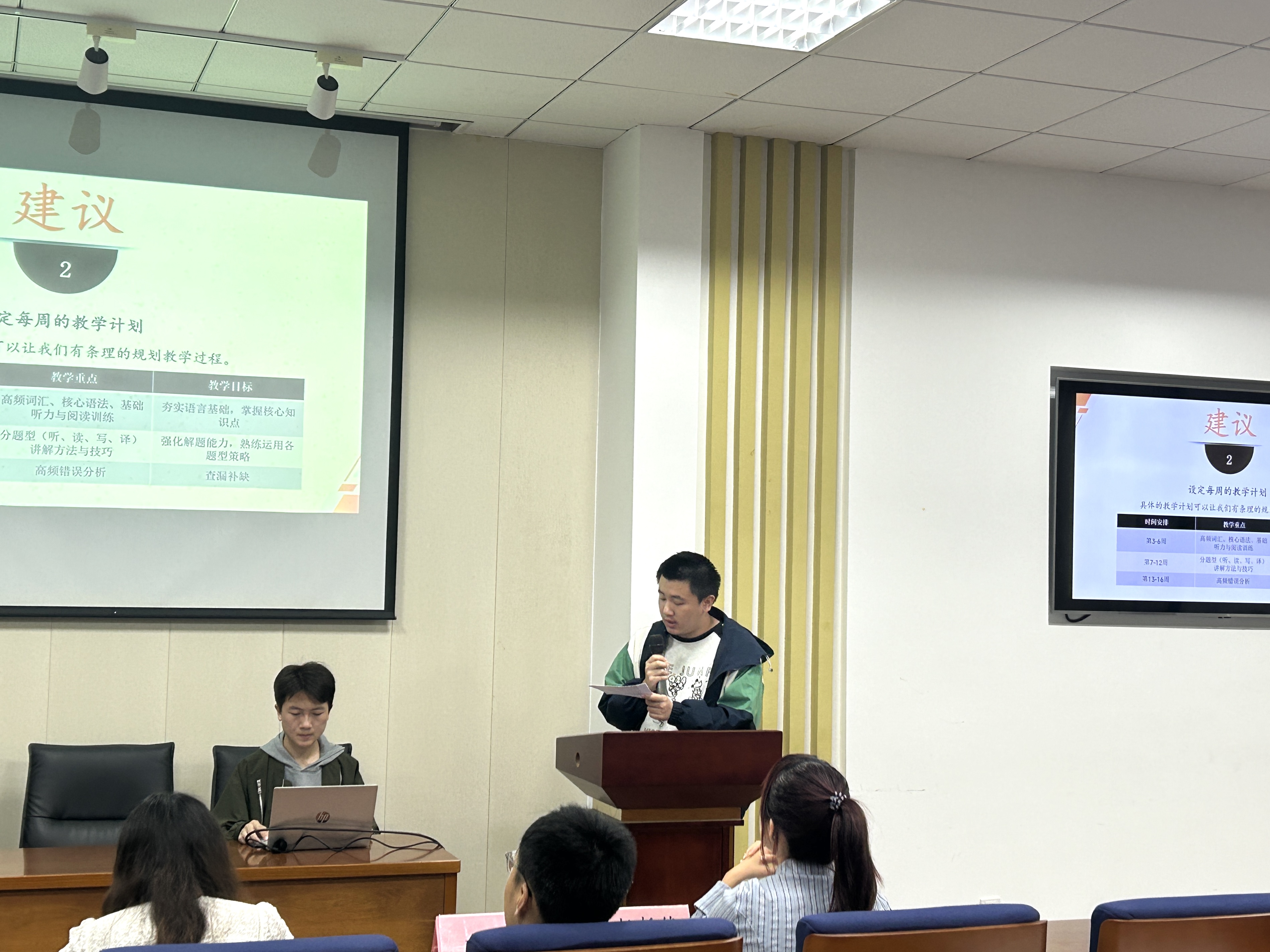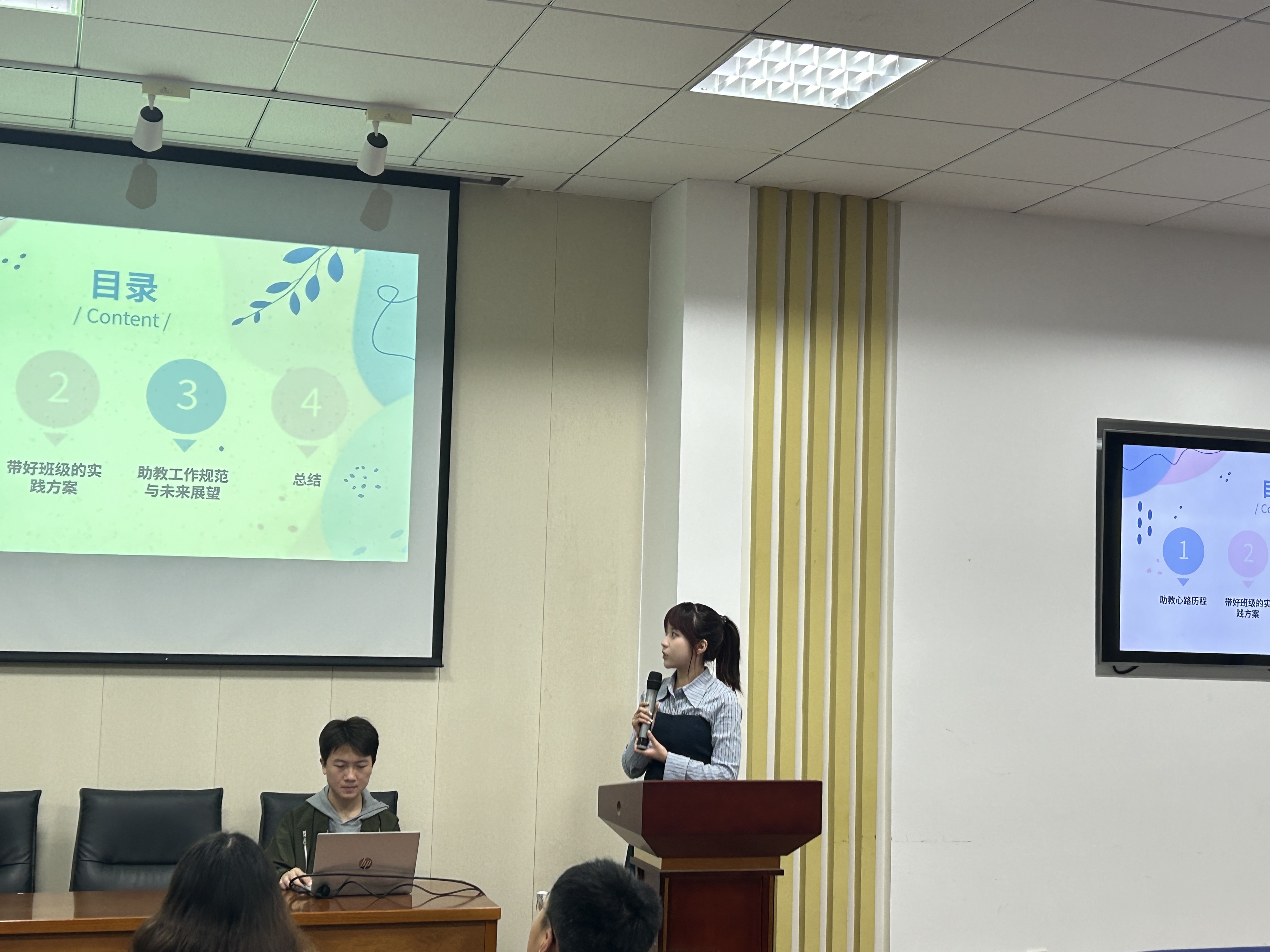 24级英语助教赵哲然同学围绕“如何缓解新生学业焦虑”,分享了用“案例激励+一对一沟通”化解负面情绪的实用技巧;针对“助教工作与自身学业的平衡”,提出了“时间分区管理+任务优先级排序”的具体策略。每一位代表的分享都贴合实际需求,现场不时响起阵阵掌声。