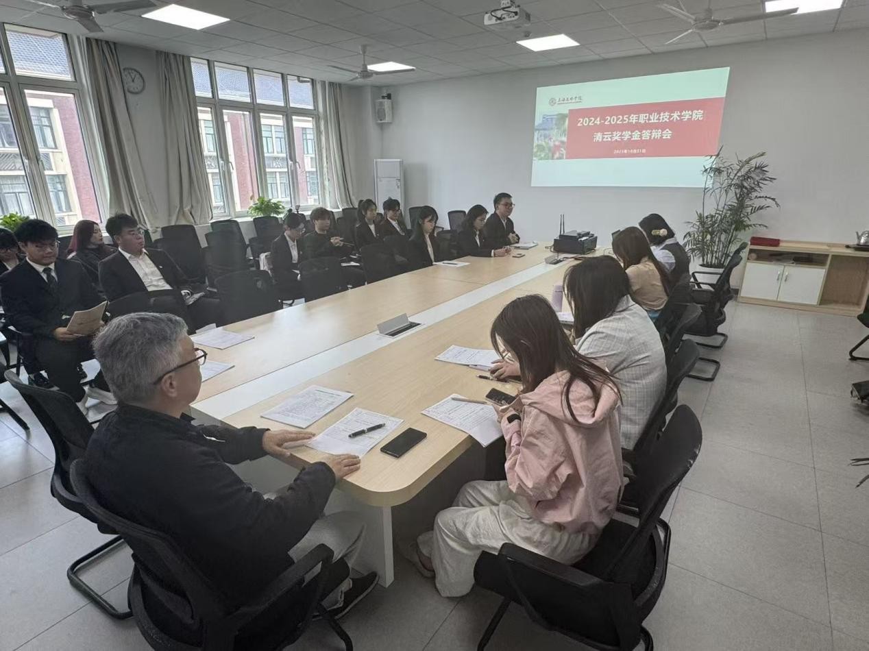 10月21日,职业技术学院召开2024-2025学年“清云奖学金”答辩会,院党委书记王加宁、副书记马冯莉,24级辅导员庞雪雅、王习力、涂红,23级辅导员裴瑞华、刘玲玲以及奖助负责人徐展飞,作为学生评优工作小组成员出席答辩会。