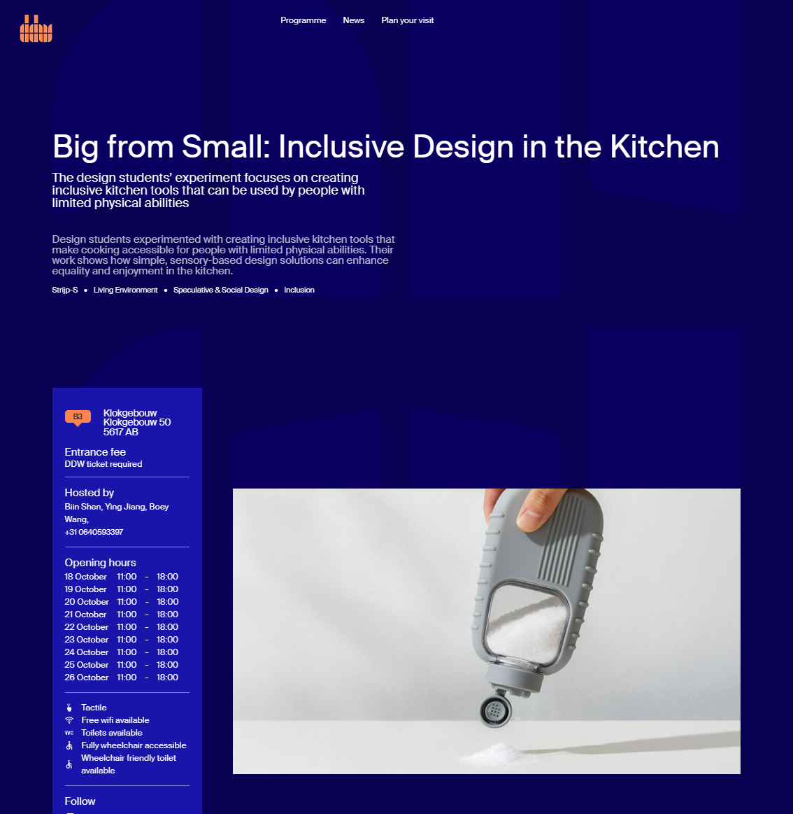 10月18日至26日,全球设计界年度顶级盛会——荷兰设计周(Dutch Design Week,简称DDW)在荷兰埃因霍温举行。上海建桥学院艺术设计学院2024级试点班学生的5件原创系列作品,受邀在主展区“Kitchen for Everyone”面向全球观众持续展出,与世界顶尖设计同台“竞技”。该系列作品由艺术设计学院院长葛洪波教授领衔的教学团队与上海工业设计协会包容性设计中心联合指导。