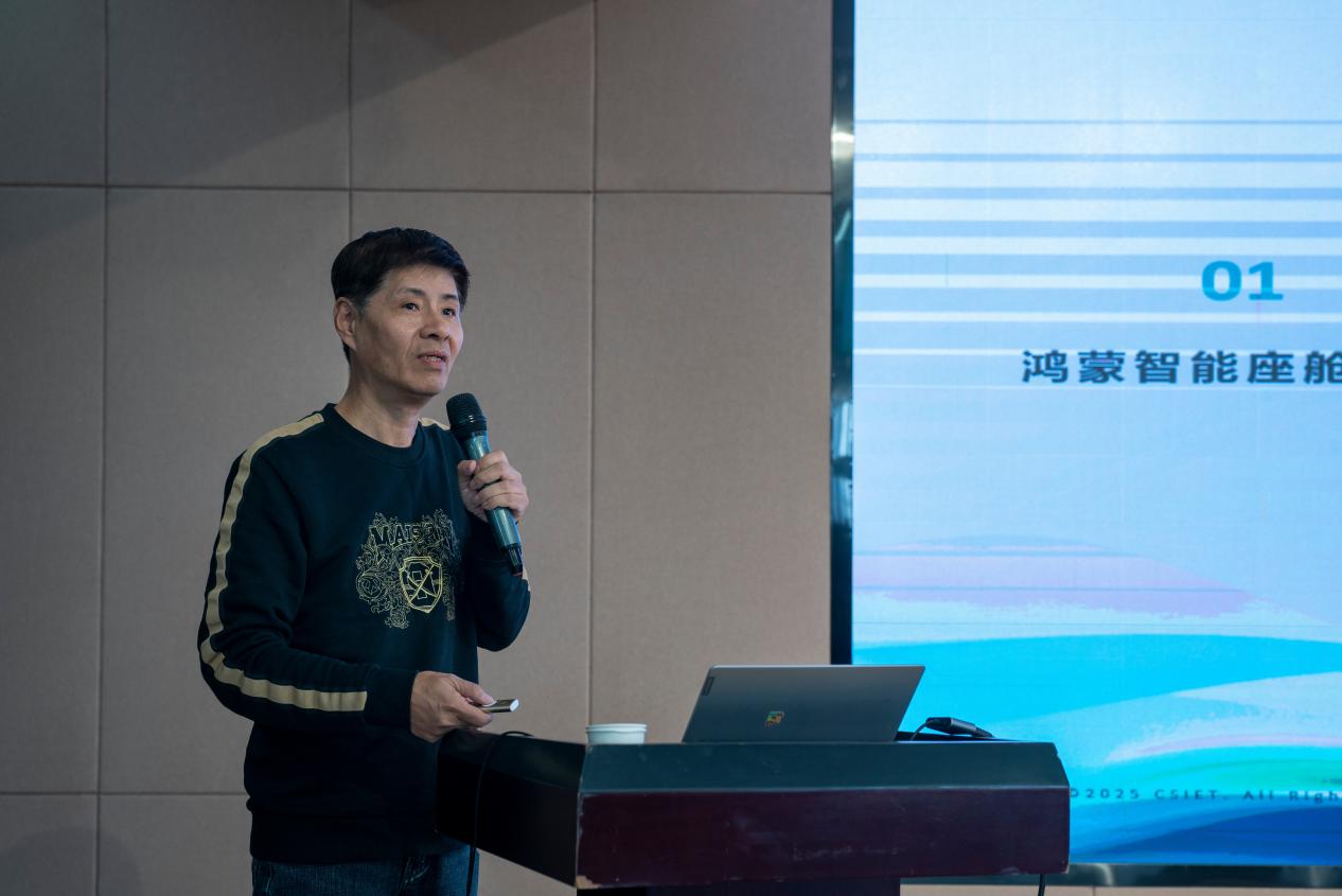无锡泛太科技常务副总经理邱健敏将技术视野延伸至产业应用端,以《鸿蒙智慧座舱的演进与实训体系建设》为题,介绍了鸿蒙智慧座舱的发展过程,现状及未来趋势,展示了鸿蒙系统在车载交互领域的技术突破。他通过全国多所高校的实训案例,详解了智慧座舱开发中的UI设计、多模态交互、场景化服务等核心模块,让学生直观感受鸿蒙智慧座舱的发展空间及实践路径。