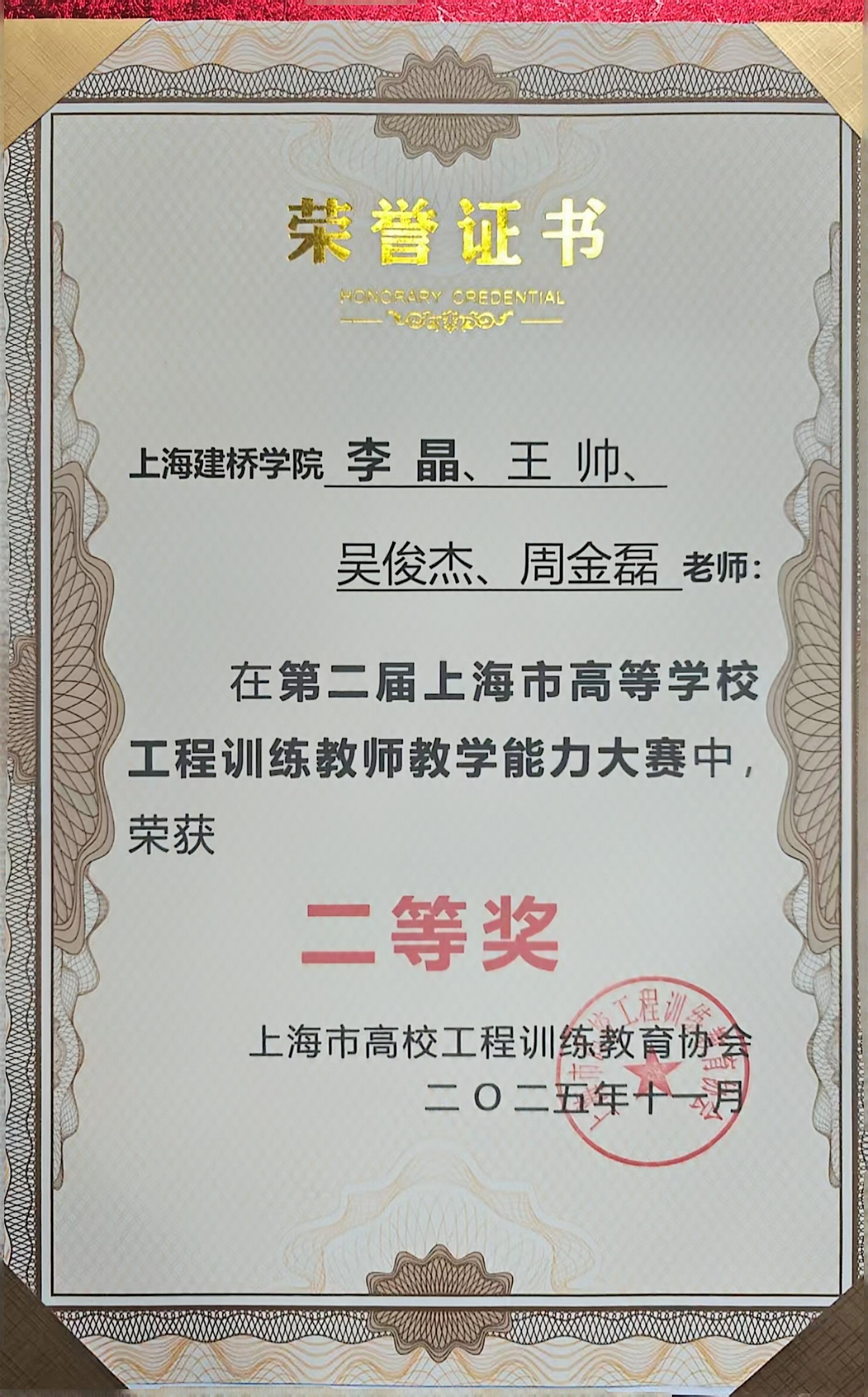 11月1日,第二届上海市高等学校工程训练教师教学能力大赛在上海工程技术大学落幕。作为上海高校工程训练教学领域的重要赛事,本次比赛汇聚了同济大学、东华大学等 12 支高水平队伍同台竞技,展现工程训练教学的最新成果与改革趋势。机电学院工程训练中心派出两支团队参赛,分别在“智能硬件类”与“数控加工类”赛项中发挥出色,双双荣获二等奖,实现成绩新突破。