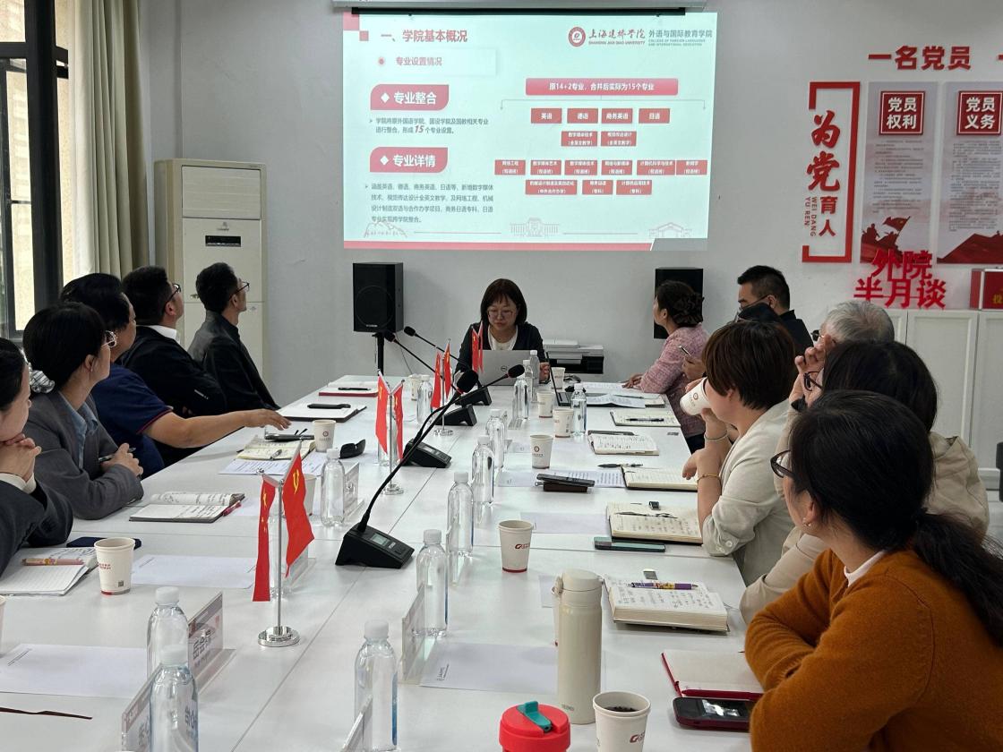 学院院长毛立群汇报了三院合并进展和新学院发展规划,围绕专业建设、产教融合、师资队伍建设以及招生就业等问题,分析了当前面临的风险与挑战,并和与会人员共同探讨应对策略。毛院长提到,新学院要凝聚三院优势,整合专业资源,优化布局,探索“外语+专业”模式,打造特色专业,提升学院综合实力。