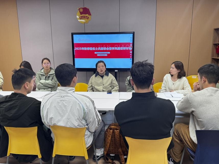 11月6日下午,我院“戎归学子”协会在北五北六团员之家顺利举行2025年秋季退伍士兵座谈会暨学风建设研讨会。学院党委副书记马冯莉、征兵负责人庞雪雅老师、各年级辅导员及退伍士兵同学参加座谈。