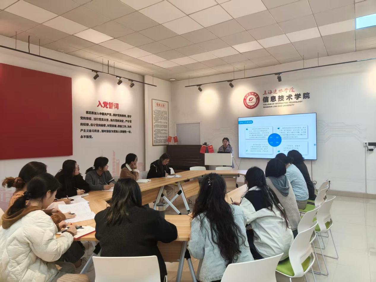 为进一步深化学院学风建设,规范学籍管理工作流程,切实提升辅导员队伍专业化工作水平,11月17日,信息技术学院在党建服务中心111室召开辅导员专题例会暨学风建设和学籍管理主题会议。学院党委副书记徐娜主持会议,全体辅导员参会。