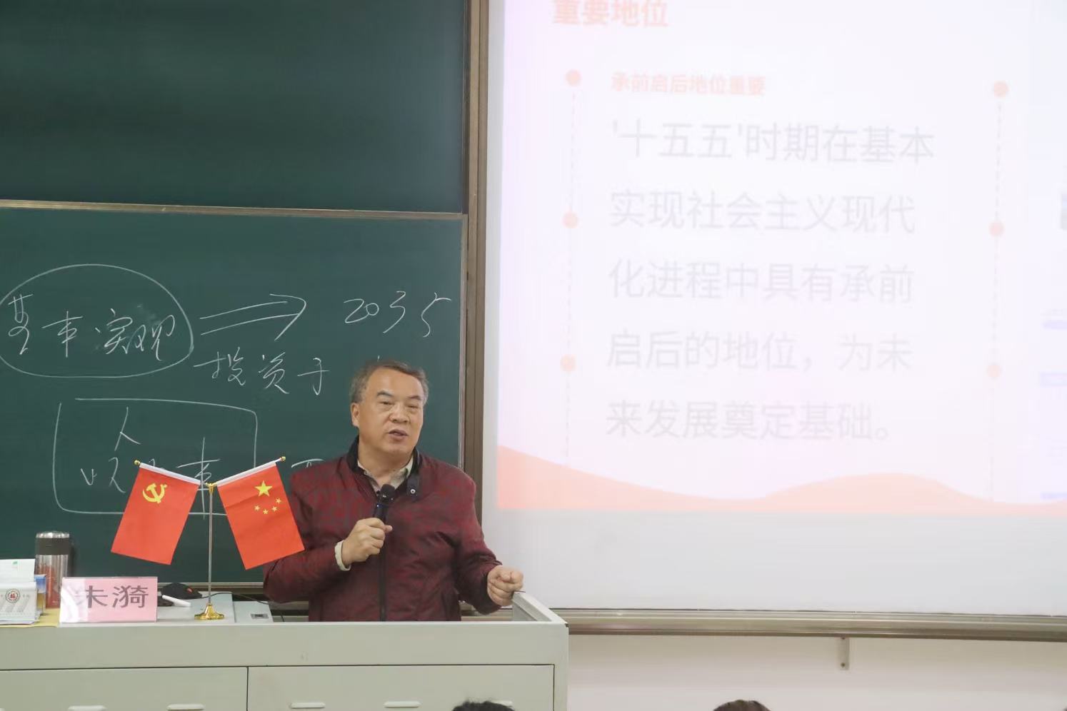 培训伊始,朱漪教授首先围绕“十五五”的“基本定位”与“重要地位”,以“九层之台,起于累土”作喻,强调规划的核心在于“夯实基础,全面发力”——既要为基本实现社会主义现代化筑牢根基,又要以昂扬斗志推进中华民族伟大复兴。他特别指出,“十五五”时期处于承前启后的关键节点,是衔接2035年远景目标的重要阶段,其政策部署不仅要接续“十四五”发展成果,还要应对世界经济变化的冲击和国际规则调整的挑战,每一项政策都将影响国家长期发展大局。因此同学们要学会从“国家大局”这个角度看问题,真正读懂规划背后的战略考量。