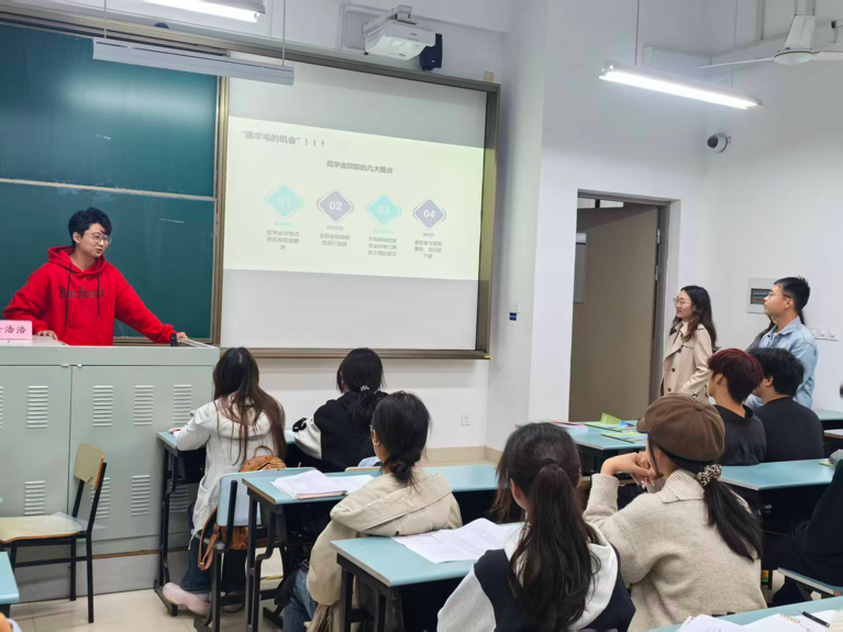 为帮助同学们明晰大学发展方向,科学规划学业与未来发展,2025年11月9日,商学院学习支持中心邀请国贸B22-1班考勤班长、24级数学总助教徐浩浩同学为25级国贸专业新生开展大学生涯规划专题讲座,与25级新生共同探索大学生涯的发展与成长路径。