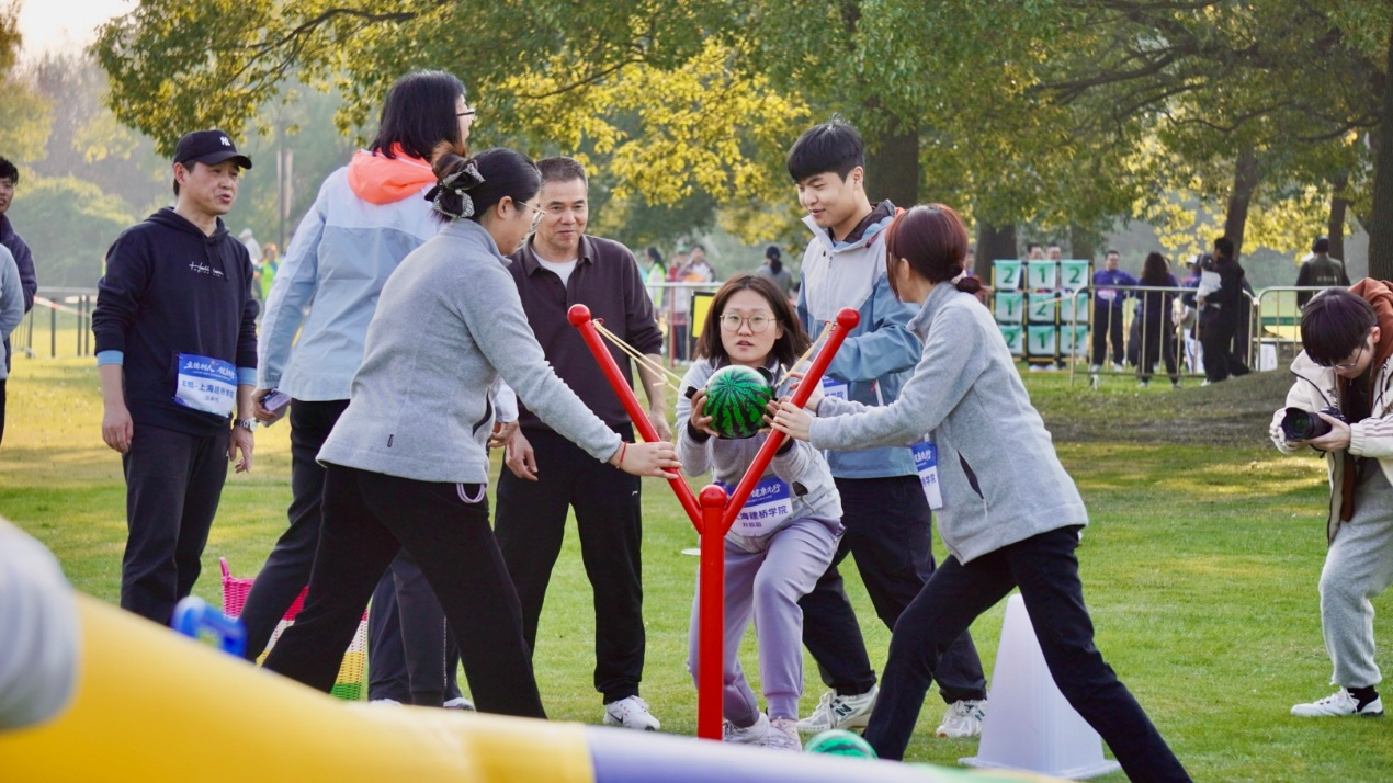 上午的健步走活动中,我校代表队精神抖擞、步履铿锵,与其他院校同仁一起沿东方绿舟风景如画的路线结伴前行,在5公里的行程中强健体魄、增进交流,以实际行动诠释“立德树人、健康先行”的理念。下午的“健身嘉年华”趣味运动会上,设有“合力跳长绳”“薪火相传”“使命必达”“箭在弦上”“同心飞盘”五项集趣味与协作于一体的项目。我校代表队凭借深厚的团队协作积淀,在赛场上默契配合、奋勇争先,在“同心飞盘”比赛中荣获高校B组季军。