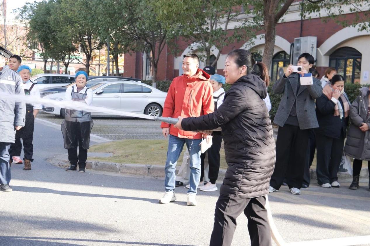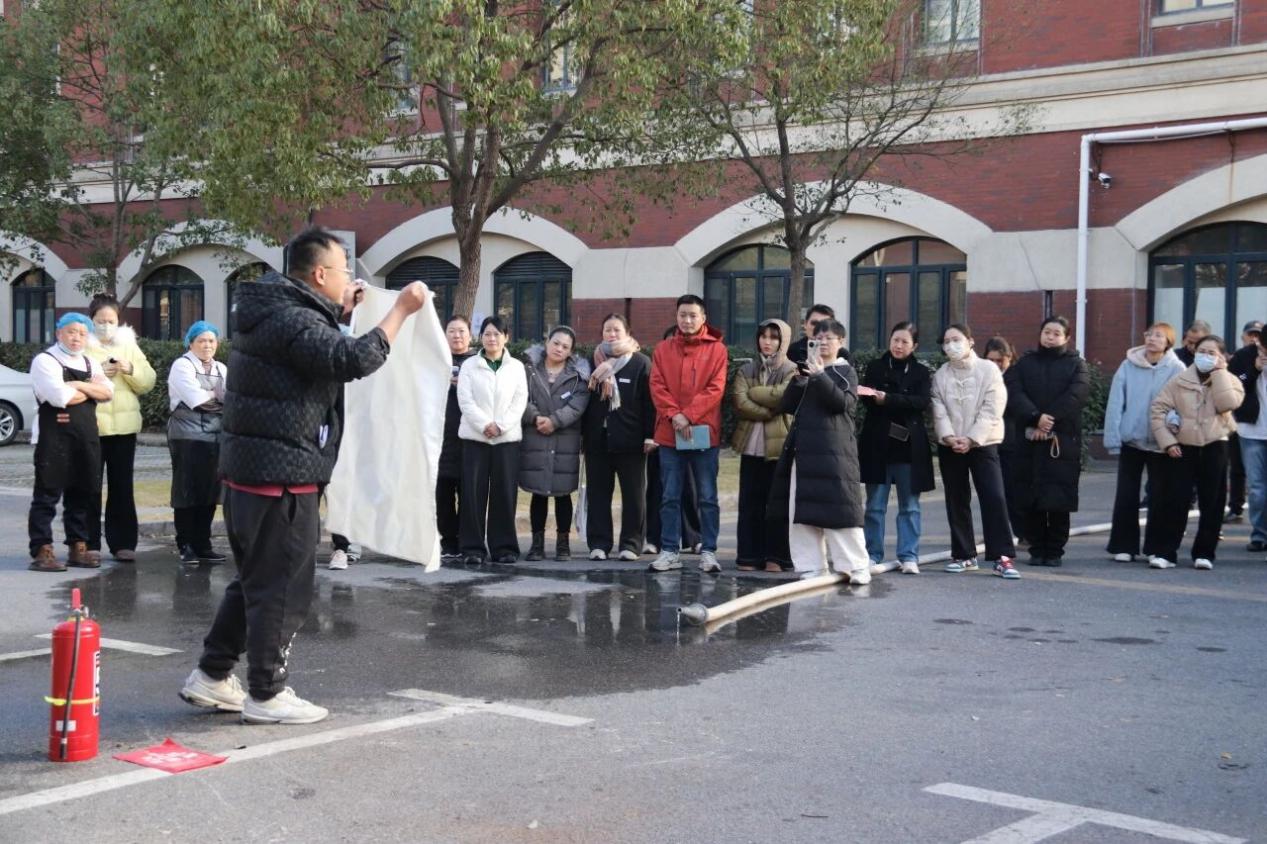 理论学习结束后,全体参会人员及第三方新员工前往室外参加消防器材实操培训。安保中心工作人员聚焦火灾应急处置要求,重点讲解并演示了消火栓、灭火器、灭火毯的使用方法,明确不同火情下消防器材的选用。