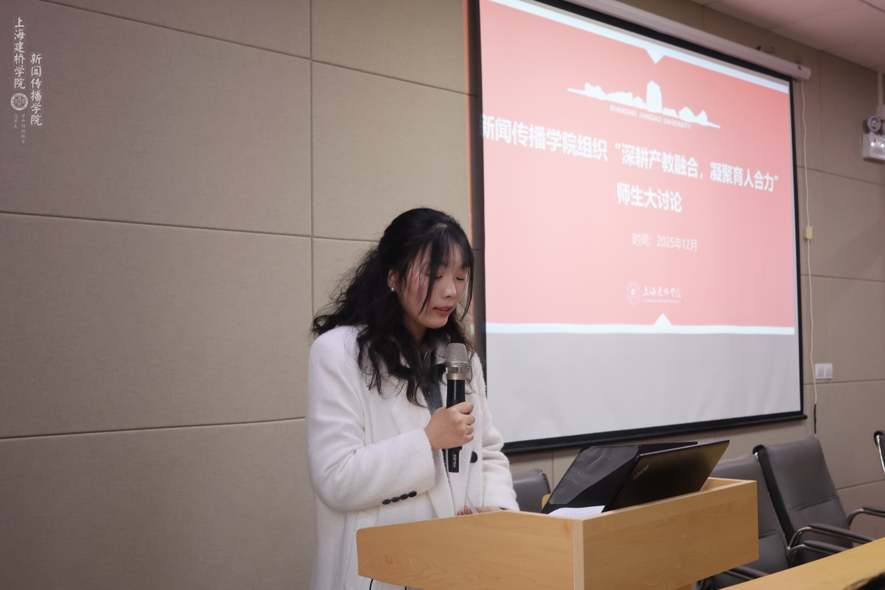 为凝聚师生共识,提升师生对融合育人的认知。12月3日,新闻传播学院于学院楼308顺利开展了“深耕产教融合,凝聚育人合力”师生大讨论活动,本次活动由新闻传播学院辅导员谢钰莹老师主持,参会人员有新闻传播学院党委书记伊莉、新闻传播学院副院长张建民、各系主任、专业导师、教师代表、全体辅导员老师、学生代表以及特别邀请嘉宾:学生处副处长高祺老师、教务处曹吉老师。