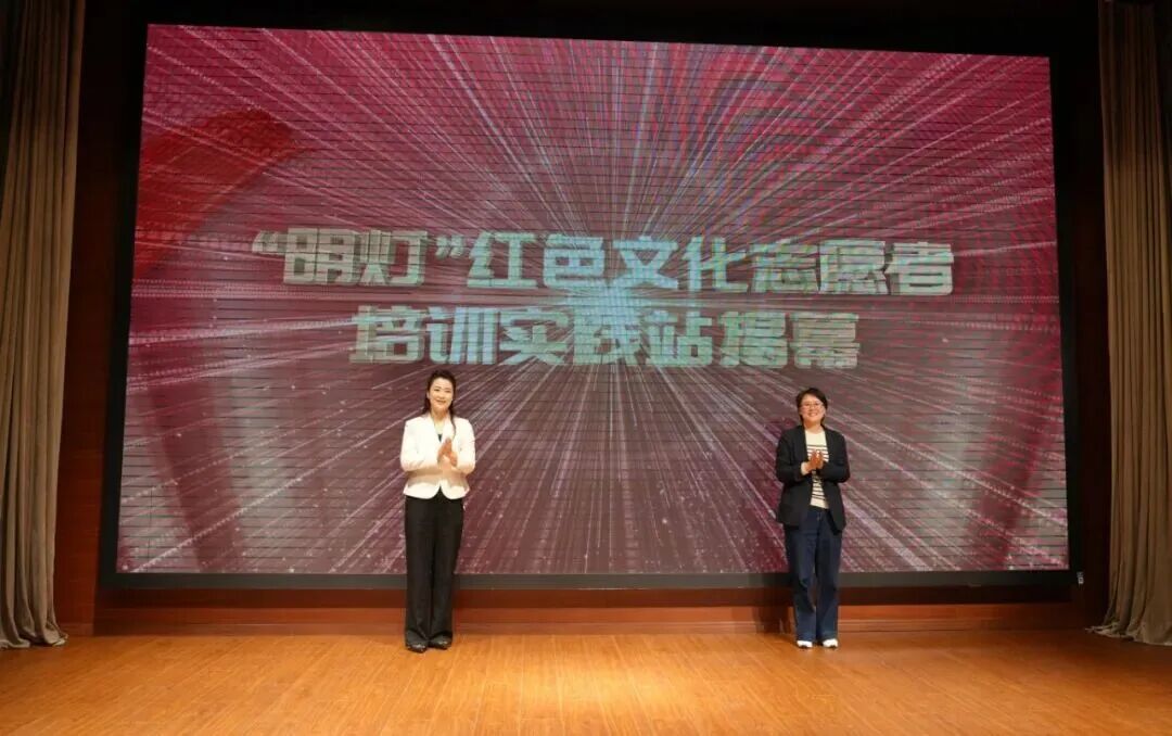 静安区委社会工作部副部长陈卫慧,中共二大会址纪念馆党支部书记、副馆长(主持工作)尤玮为“明灯”红色文化志愿者培训实践站揭幕。