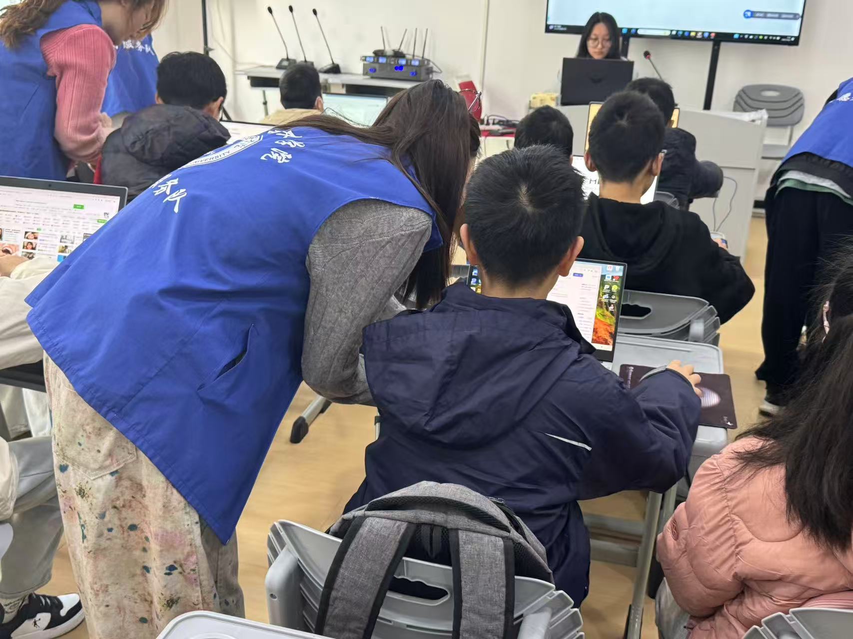 参与活动的志愿者感受颇多,其中有一位志愿者分享道:“这次走进芦潮港社区党群服务站,给小朋友们讲授Scratch图形化编程课,对我而言是一段温暖又鲜活的难忘体验。课堂上,孩子们的目光紧紧锁在屏幕上,小手在积木区里飞快地拖拽、拼接,专注得连眨眼都舍不得多耽搁。我真切地感受到,这不仅是一堂简单的编程课,更像是一场生动的‘想象力启蒙’。看着这群眼里闪着光的小创作者,我深深明白,一颗关于‘探索与创造’的种子,已经悄悄在他们心里发了芽。能陪伴孩子们走过这段充满奇思妙想的编程之旅,见证他们每一次思维的跳跃与技能的提升,真的是一件无比幸福且有意义的事。”