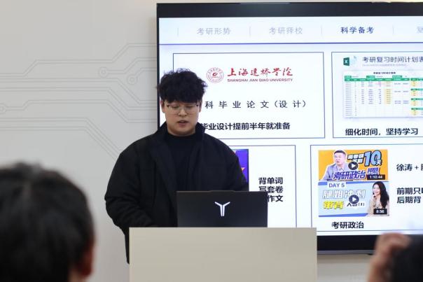 田乐鑫学长首先围绕当前就业与考研形势展开分享,结合最新数据剖析就业市场岗位缩水、毕业生规模激增、低技能岗位逐步被替代的现状,让学子清晰认知考研的必要性与重要性。同时,他重点解读考研利好趋势,从考研报名人数连续三年下降、部分专业国家线降低、硕士点扩招等关键信息切入,为学子传递备考信心,帮助大家精准把握行业发展与考研政策导向,明确自身备考定位。