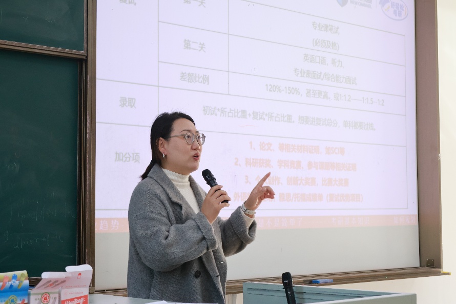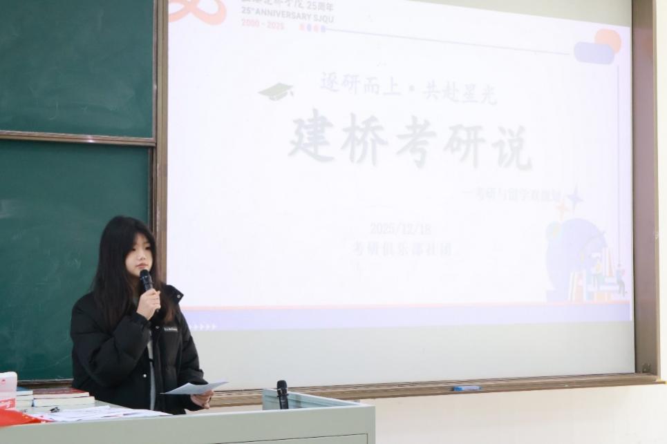为帮助同学们更科学地规划未来学业路径,厘清考研与留学双线发展的可能路径,2025年12月18日,由我校考研俱乐部社团主办的“考研与留学双规划”专题讲座在一教122教室顺利举行。本次讲座由新航道赵磊老师主讲,面向全校同学开展系统指导,旨在为学生提供系统性、前瞻性的升学规划指导,搭建高质量的学业发展交流平台,也标志着社团品牌活动“建桥考研说”的正式启动。