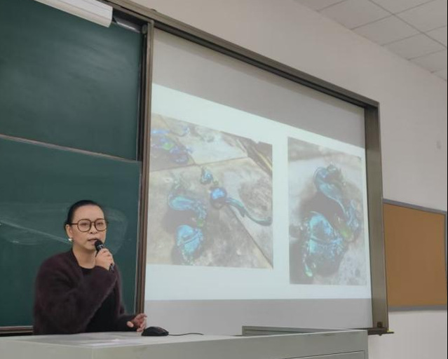 本次讲座由珠宝学院教学副院长杨天畅详细介绍本次讲座的安排与意义。她指出,本次校企对接不仅是学院创新创业课程的重要组成部分,更是推动学生作品向市场转化、提高毕业设计实践性的关键举措,旨在帮助学生更直接地了解行业需求与技术动态。