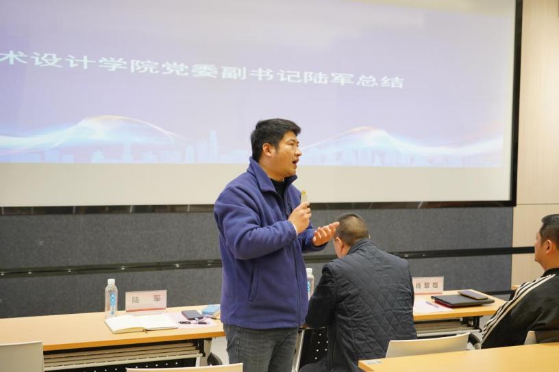 活动尾声,艺术设计学院党委副书记陆军作总结讲话。他对本次大赛的圆满举办表示祝贺,对所有参赛选手的积极参与、评委老师的专业指导以及工作人员的辛勤付出表示感谢。陆军指出,本次“艺创杯”大赛不仅是一场竞技比拼,更是学院创新创业教育成果的集中展示,同学们在赛事中展现的创新精神、实践能力与团队协作意识,正是新时代青年应有的素养。他鼓励同学们以本次大赛为起点,持续深耕专业领域,勇于探索创新,将创意转化为成果,在艺术与创业的道路上稳步前行。