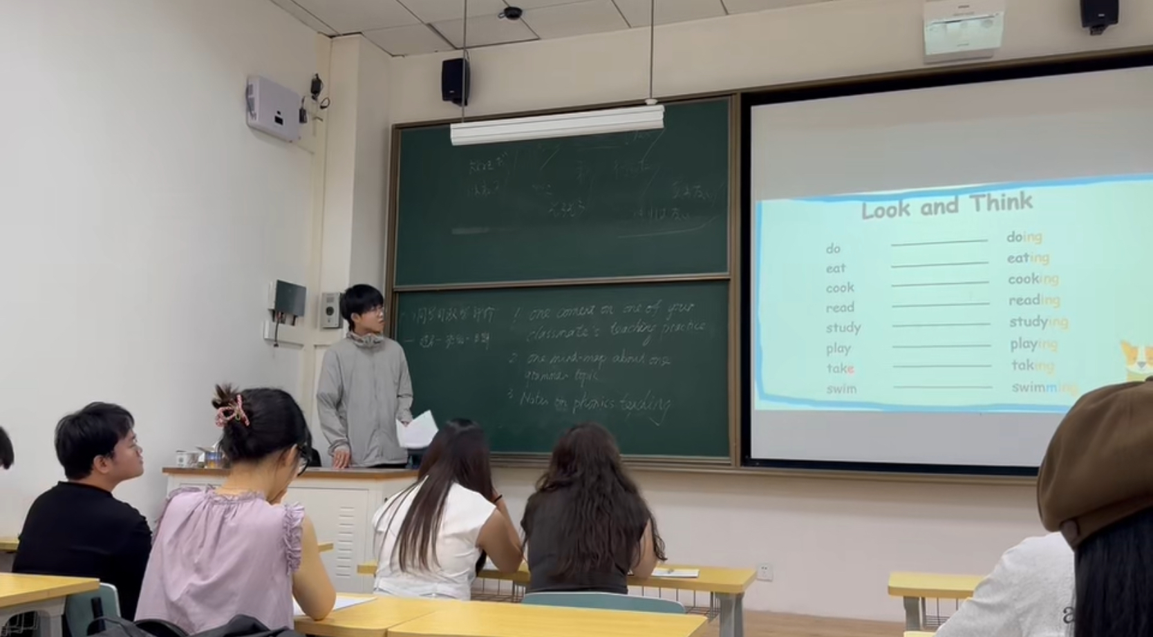 真正让林盛航从“对教育感兴趣”转变为“立志深耕教育”的,是一次谢教授推荐的写作课见习。面对学生作文千篇一律的困境,他运用课堂所学的“生活素材激活法”,引导学生从日常生活中提取素材,用简单词汇搭建句子,教学效果立竿见影。